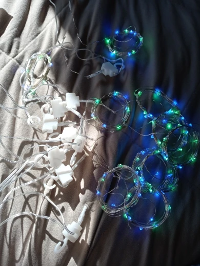 пришло день в день, не совсем как на фото.. но тоже красиво, и если есть возможность не берите шторы со светодиодными проволоками как тут, пришлось каждую штуку пришивать внизу к шторе..все путается сминается скручивается в пружинку не свисает ровно, пульт хорошо, usb втыкать или в комп/ноутбук или в повербанк.. лучше наверно обычная вилка в сеть..