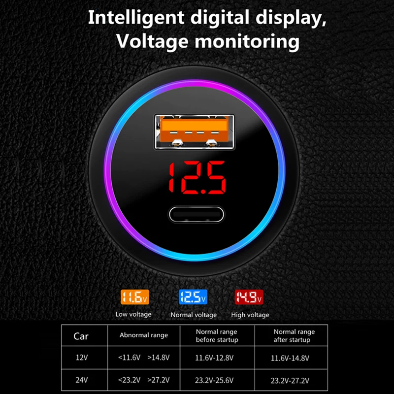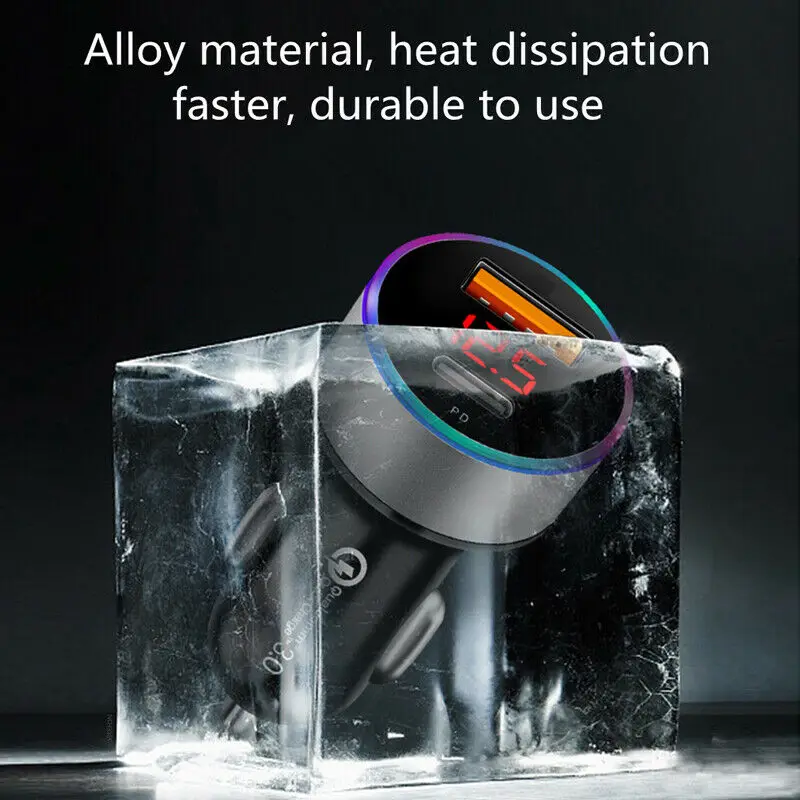 Автомобильное зарядное устройство Smart USB PD меньше, чем кредитная карта, и мягкий синий светодиодный светильник полезен для поиска usb-розеток и безопасного вождения в темноте.