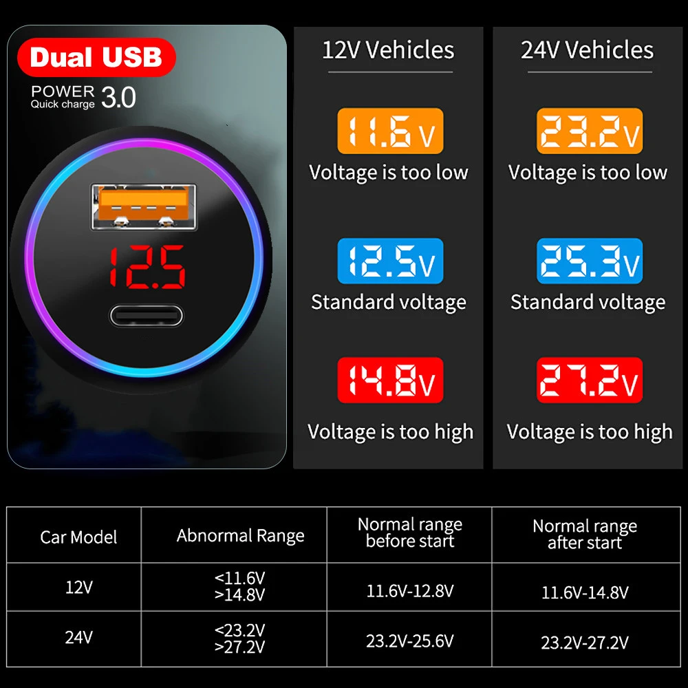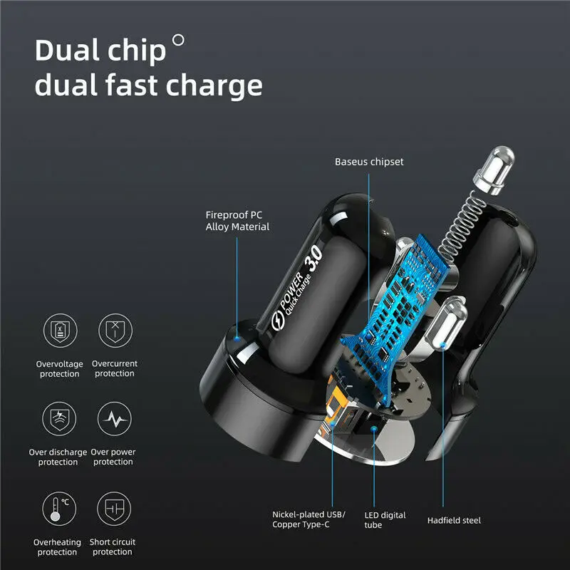 Двойная интеллектуальная зарядка + быстрая зарядка 3,0