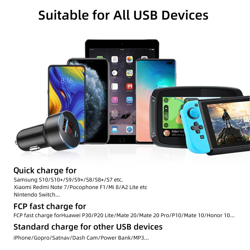 36W/6A автомобильное зарядное устройство Зарядка до 60% 35 минут, вы можете полностью зарядить ваш смартфон в течение 1-1,5 часов. Вы можете заряжать два смартфона одновременно на полной скорости.