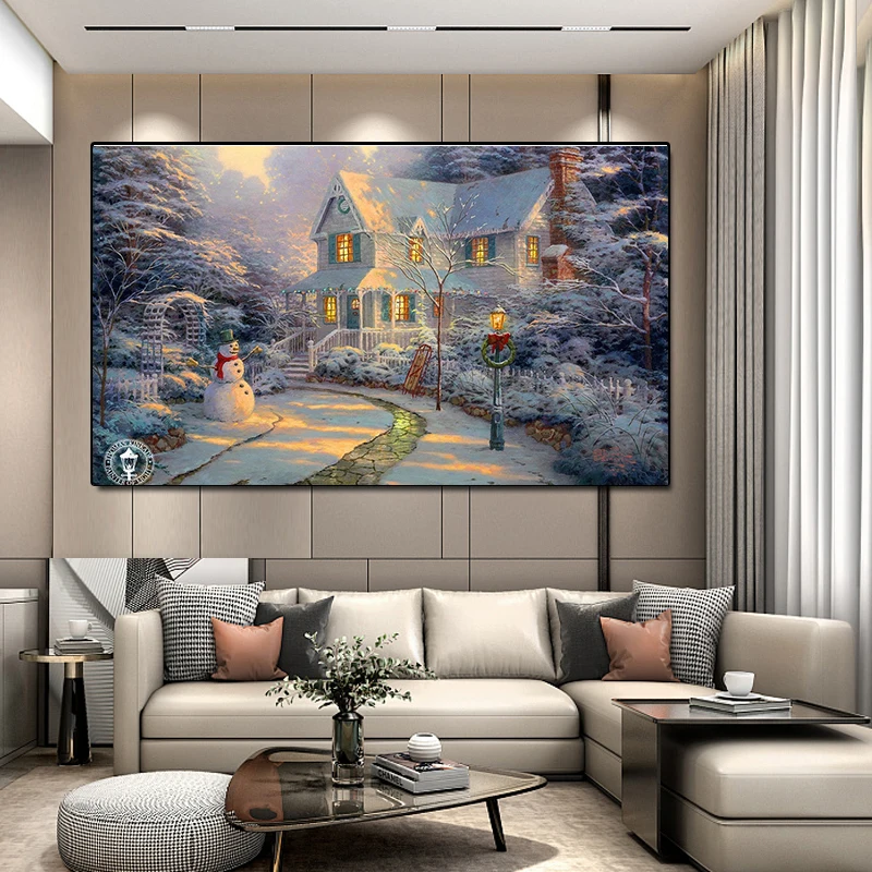 Постер на холсте с изображением снежной сцены на зиму, Рождественская серия, настенное искусство для гостиной, современные скандинавские картины, Декор