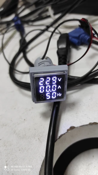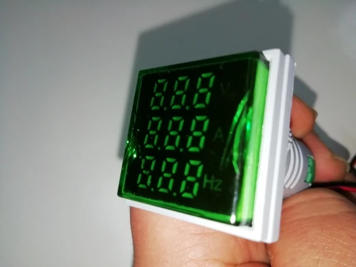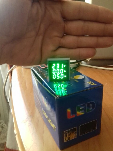Напряжение меряет, частоту то же, но очень маленькая чувствительность по току, лампу 10Вт и паяльник 80 Вт не увидело. Утюг на 2,2 кВт показало 9.33А, что в принципе, похоже. Кому нужна точность, крайне не рекомендую, есть более точные измерители, хотя и дороже.