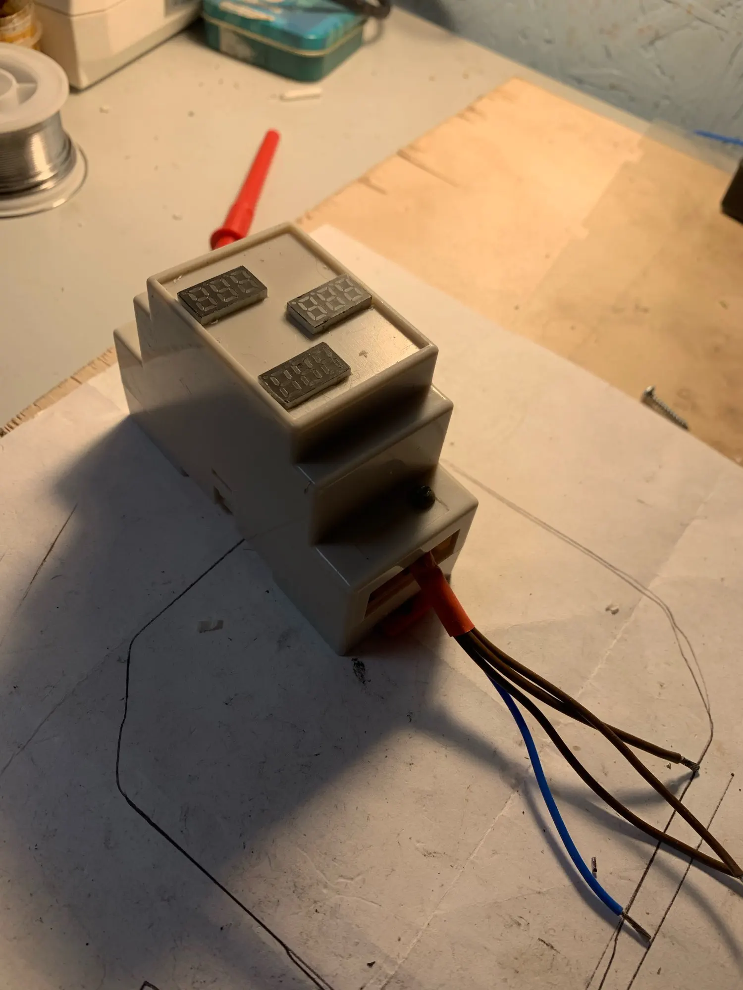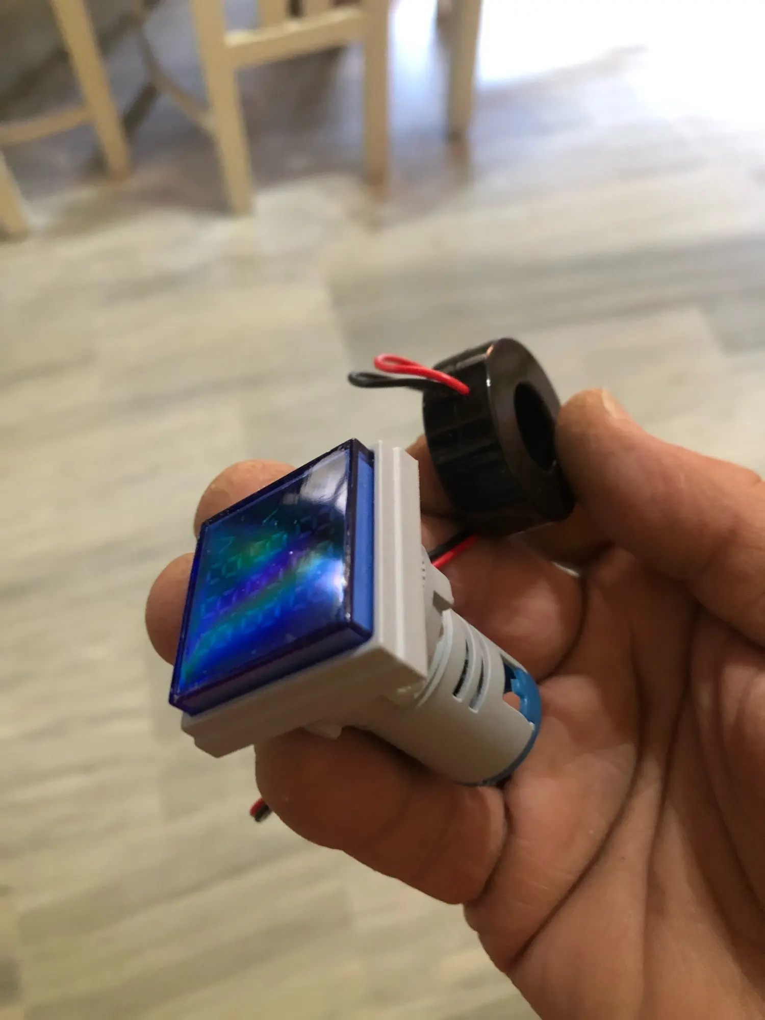 Вроде всё работает, сначала трансформатор тока одевал на два провода - амперы не показывал, потом через транс пропустил один провод и кстати пофик хоть фазу хоть ноль и ампрерметр заработал, почему так х.з., ампер вроде не врёт.