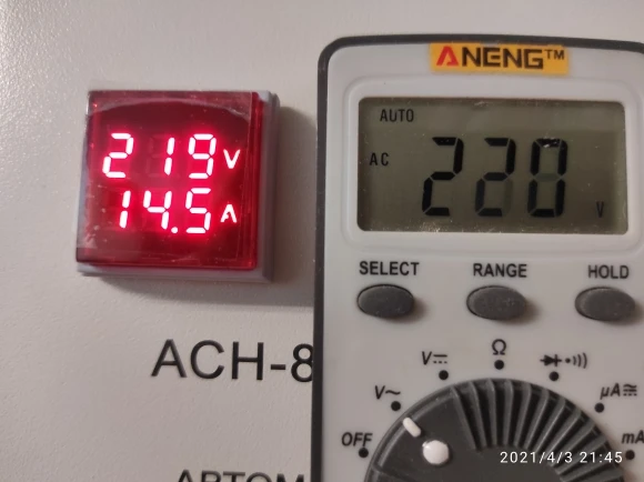 Заказ получен.Всё хорошо.Напряжение при 220в завышает на 7 в.Ток в норме +- 1-2%.