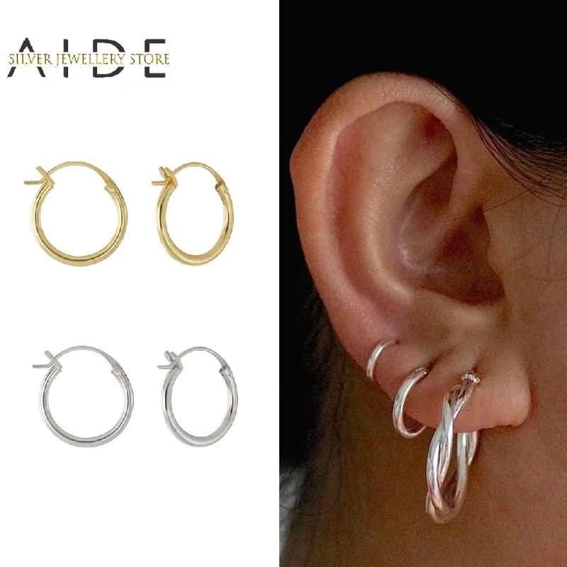 Женские серьги-кольца AIDE простой: золото, серебро, цветные глянцевые круглые серьги круги для свадебной вечеринки серебро 925 пробы ювелирные изделия