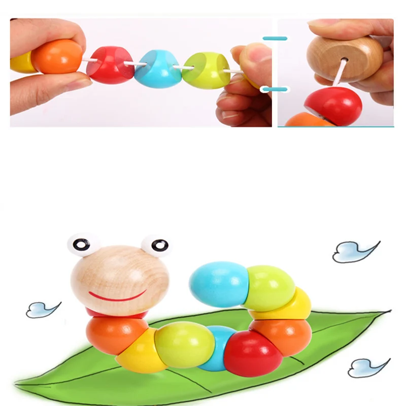 Детская головоломка Монтессори, развивающая деревянная игрушка, детские пальцы, гибкая тренировочная головоломка в форме червя, математические игрушки для детей