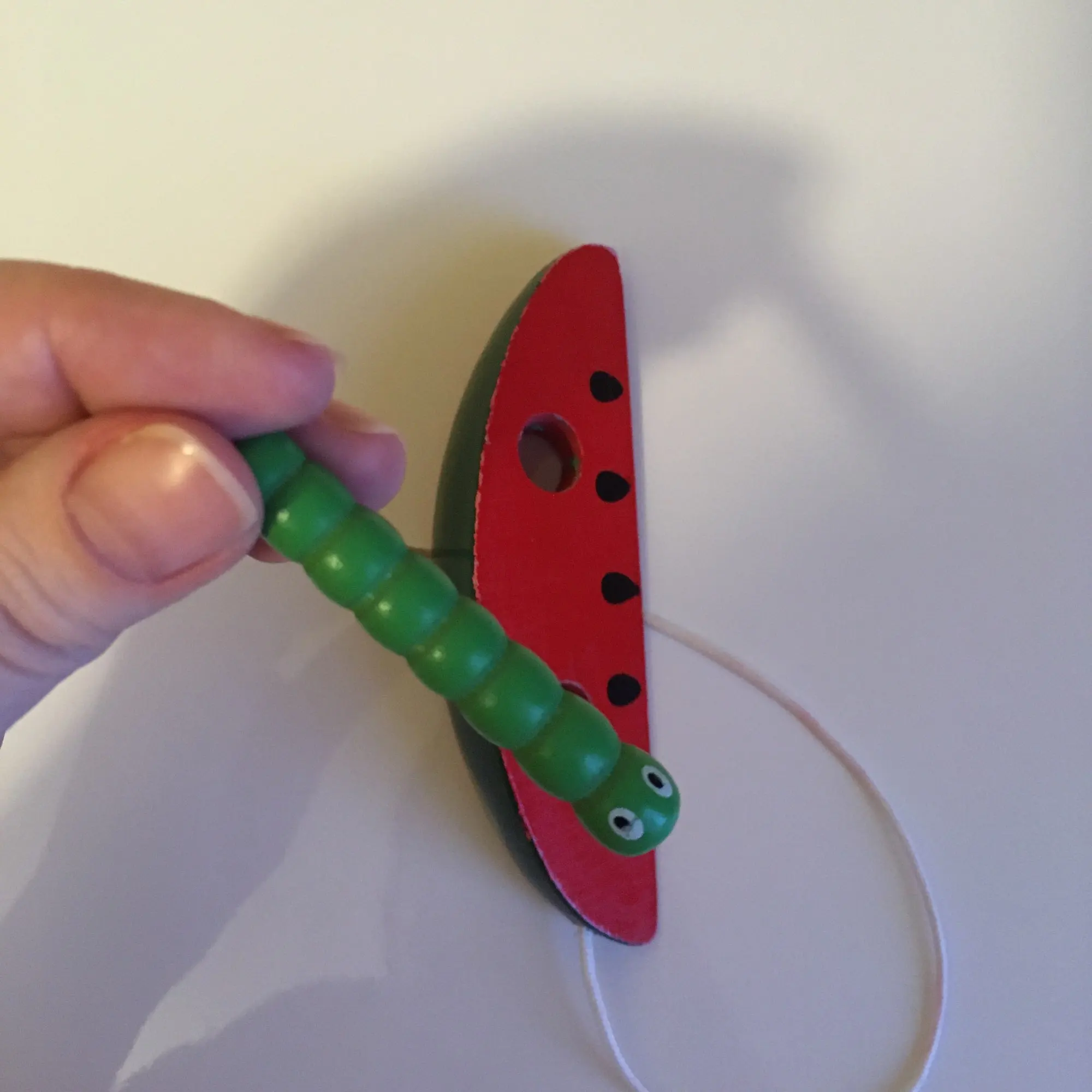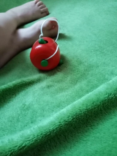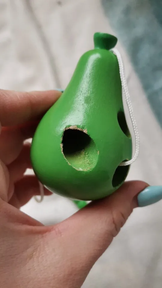 Яблоко маленькое, зато удобно брать в поездки. Качество не очень хорошее, сразу помыла яблоко, после чего во время игры покрасилась нитка в красный цвет, краска облупилась по краям тоже в первые же минуты использования.