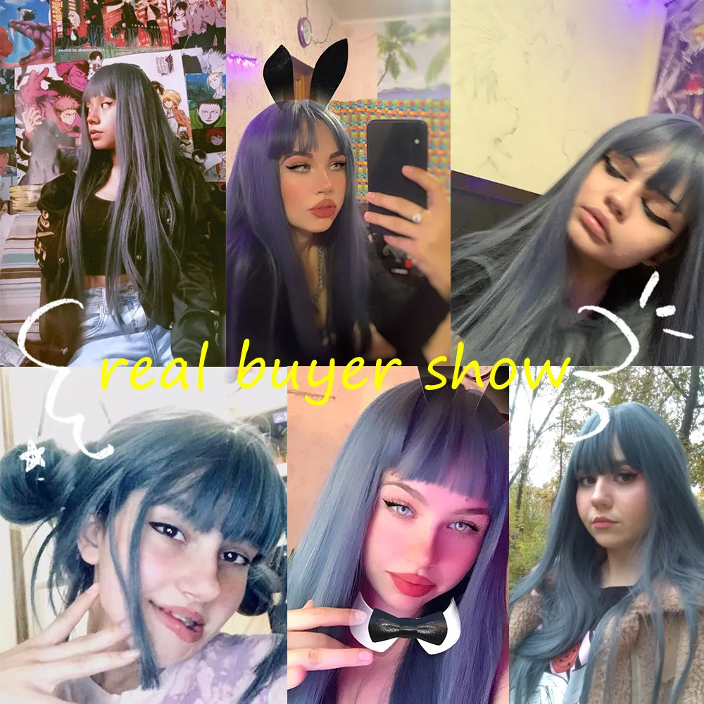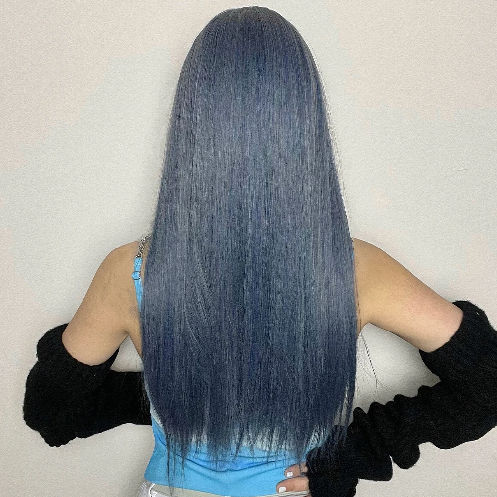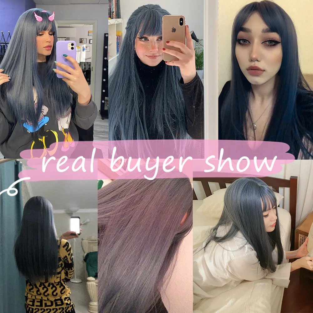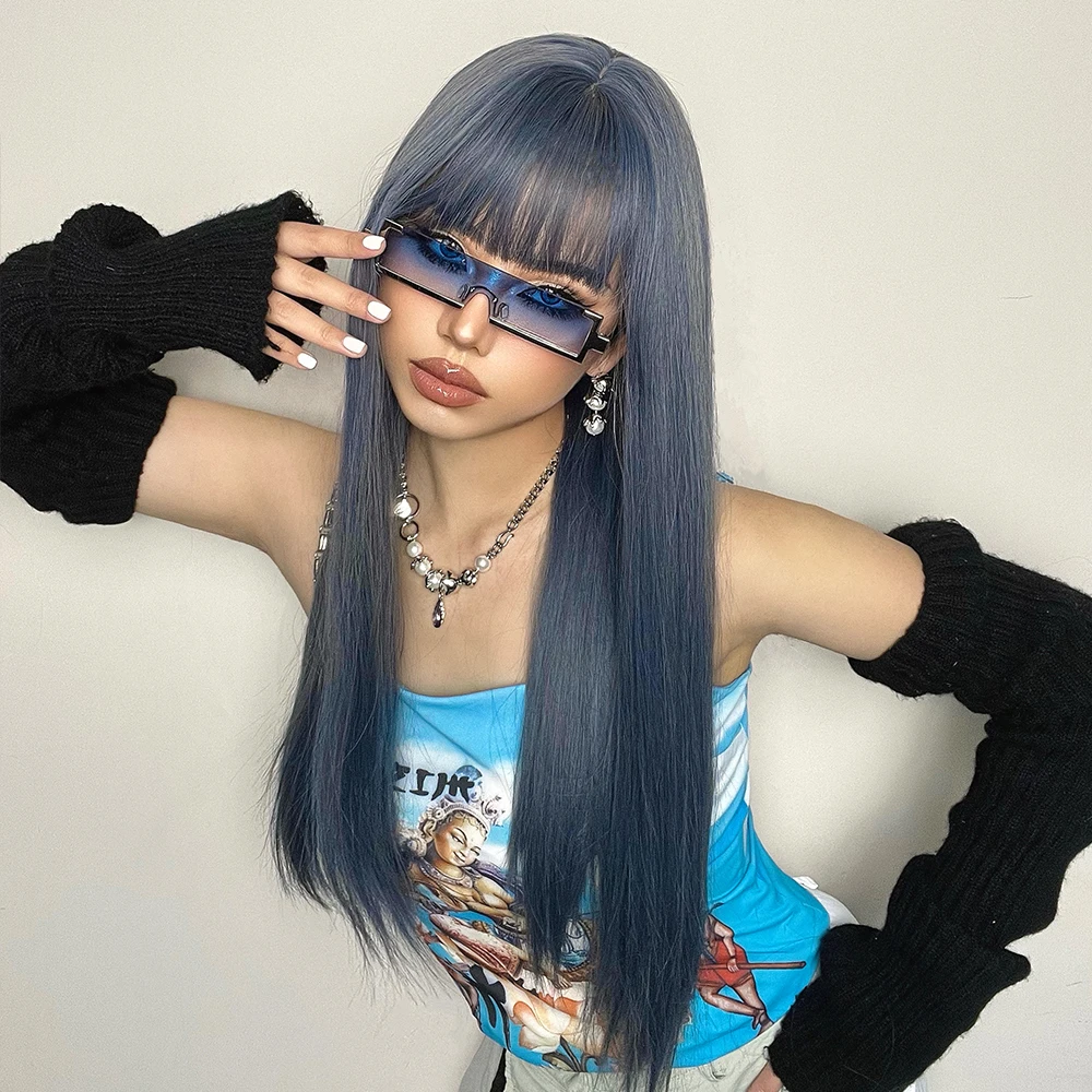 Длинные прямые Синие Серые синтетические парики с челкой henmargu, синие натуральные волосы для женщин, термостойкие, для косплея