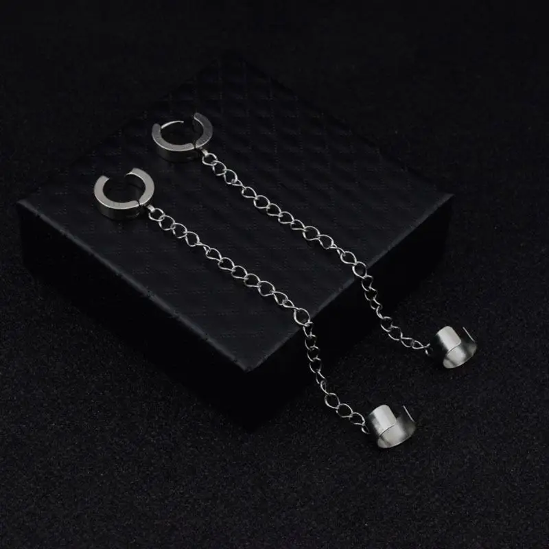 Ювелирные изделия корейский хип-хоп титановая стальная цепочка Threader каффы серьги унисекс