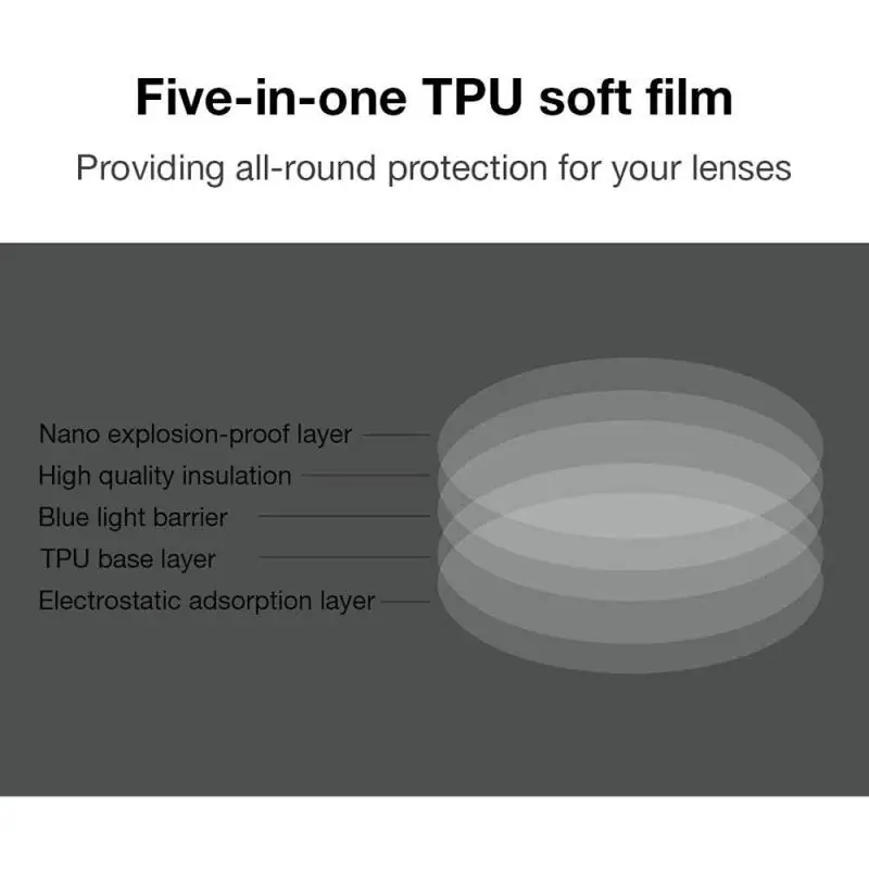 Мягкая пленка из ТПУ, полная прочности, Электростатическая Адсорбция, обеспечивает всестороннюю защиту ваших линз.