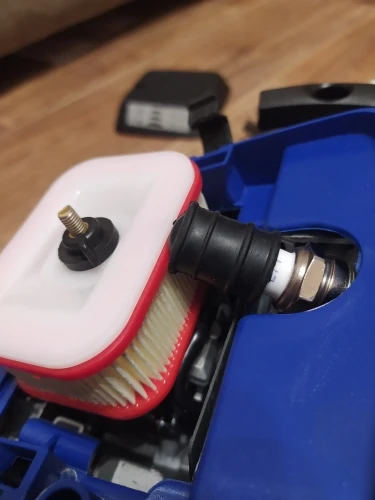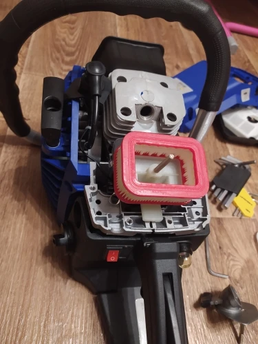 Доставка быстрая 22 января ночью заказал, 2 февраля уже была в Казани. качество неплохое, пластик не фрезерован лучше между карбюратором и площадкой корпуса фильтра намазать герметик. Резинка фильтра жестковата, есть вероятность что то же может быть щели, можно попробовать нанести тонкую бороздочку герметика(формирователя прокладок) на пластик где примыкает фильтр. По размерам прям впритык, даже надсвечник немного фильтр продавливает. крышка закрывается, так что всё Ок. Пила Витязь на 52 куб.