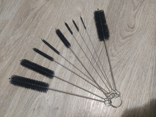 Все кисти длиной 200 мм, безопасны в посудомоечной машине и изготовлены из нержавеющей стали и нейлоновой щетиной.