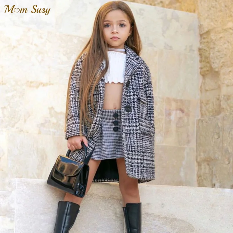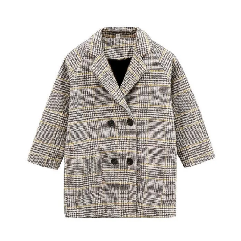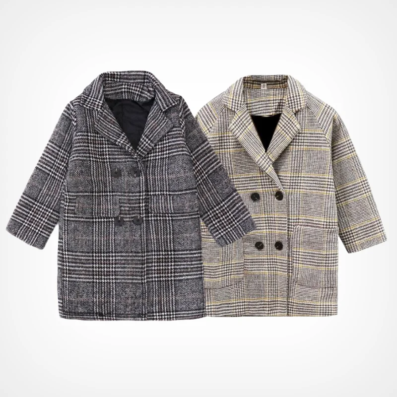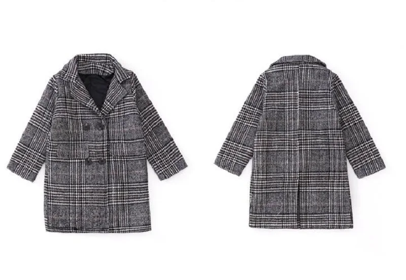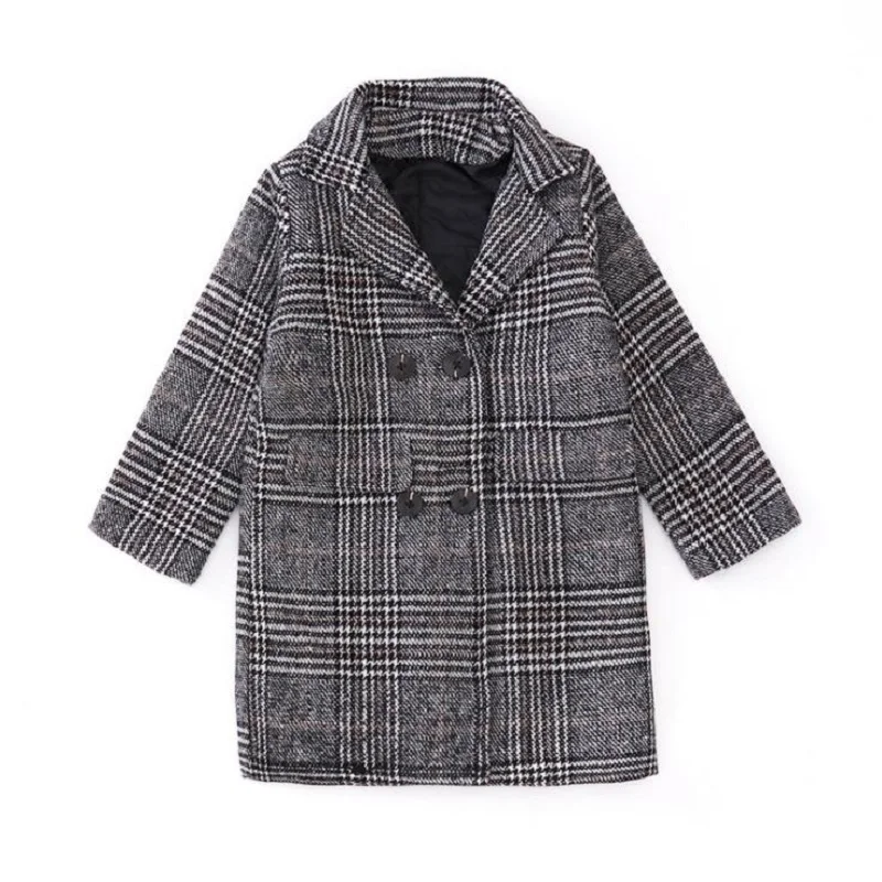Шерстяная куртка для маленьких мальчиков и девочек, длинное двубортное твидовое пальто с отложным воротником для подростков, теплая верхняя одежда для детей ясельного возраста на весну, осень и зиму