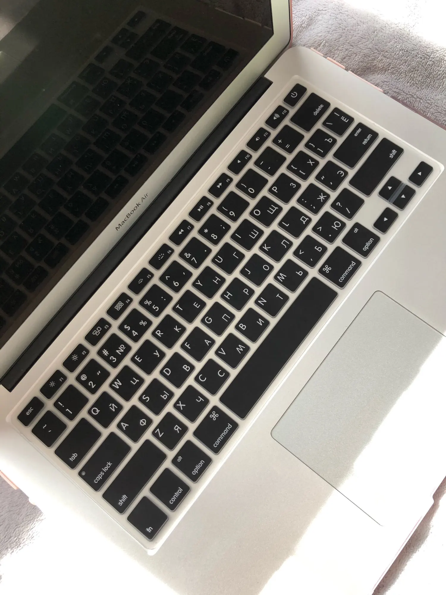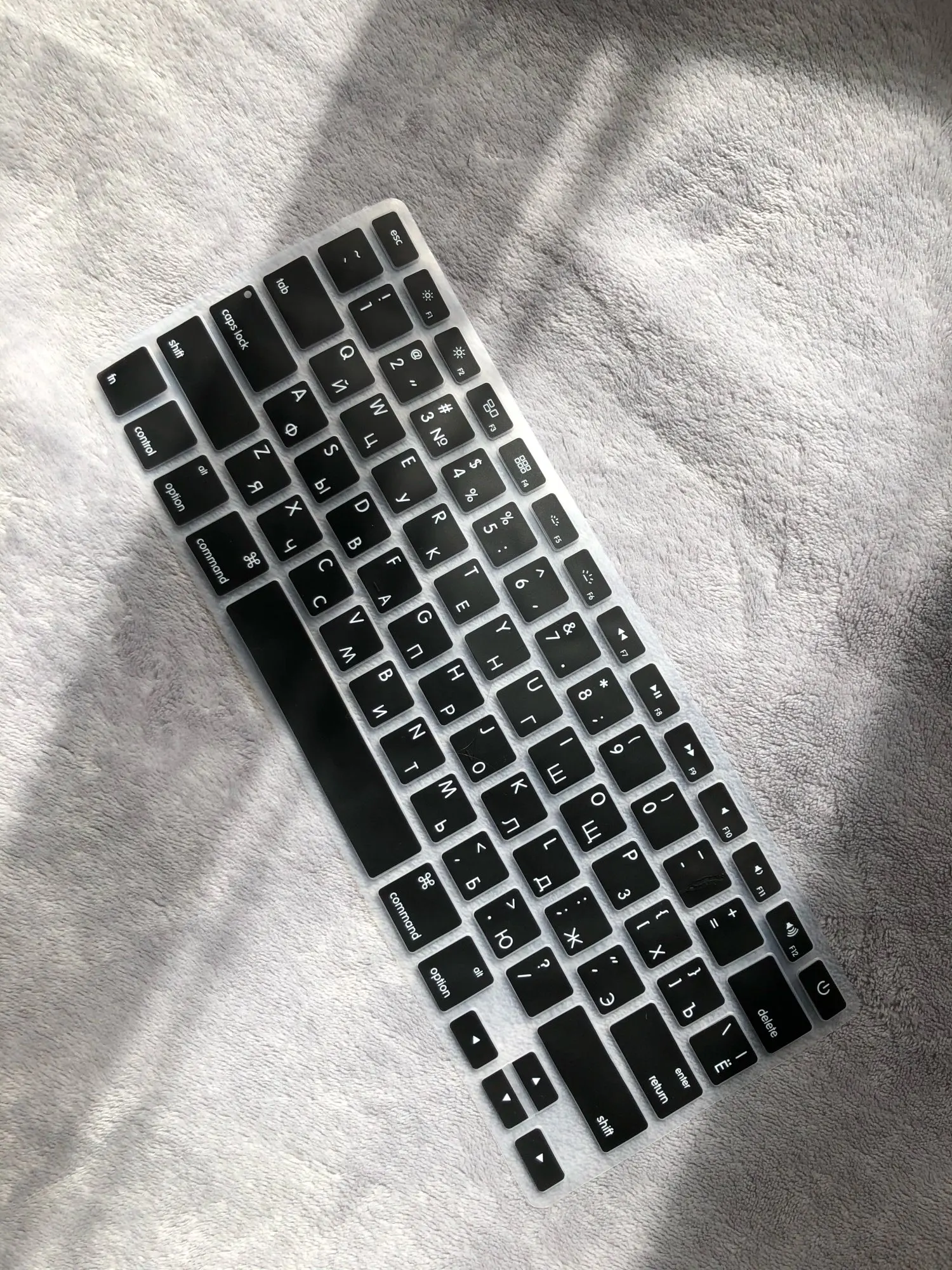 Высококачественная силиконовая защита от пыли, водонепроницаемая, маслостойкая защитная пленка.Введите кнопку возврата, английские буквы + русские алфавиты.Универсальный для mac Для iMac ПК компьютер для macbook 13/15 (не для волшебной клавиатуры bluetooth, не для macbook 11 12 дюймов, не для ноутбуков Dell других брендов).Мягкая Высококачественная Прочная кожа обеспечивает легкую посадку и отсутствие шума.Гибкий силиконовый чехол защищает клавиатуру от пыли, грязи и разливов.Его можно мыть теплой водой.Характеристики:Тип товара: защитный чехол для клавиатурыМатериал: силиконЦвет: черный/белый/серебристый/белый + синий/желтый/фиолетовый/зеленый/прозрачный (по желанию)(В дополнение к прозрачному стилю, чехол для клавиатуры других цветов для России)Размер: идеально подходит для Apple Macbook AIR pro 13/15Версия: Версия СШАКоличество: 1 шт. (другие демонстрационные аксессуары на картинке не включены)Примечание:1. Перевод ед. измерения: 1 см = 10 мм = 0,39 дюймов2. Допускается погрешность в 0-1 см из-за ручного измерения. Пожалуйста, убедитесь, что вы не возражаете, прежде чем сделать ставку.3. Из-за разницы между различными мониторами изображение может не отражать фактический цвет изделия. Спасибо!4. Нет розничной упаковкиПосылка включает в себя:Чехол для клавиатуры версии США-1 шт.