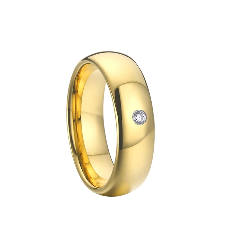 Кольца женские из вольфрама, покрытые желтым золотом, 18 карат, 4 мм, с камнем, оптом