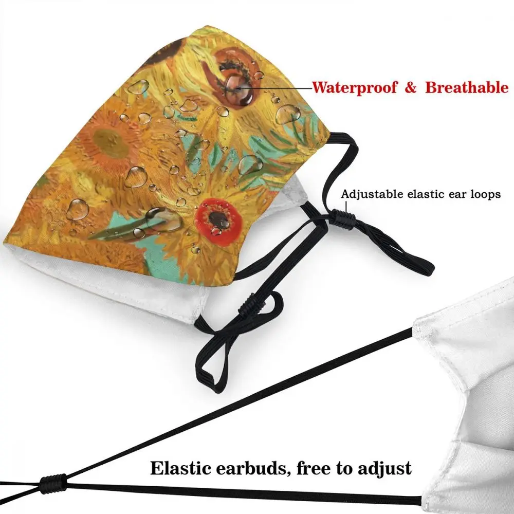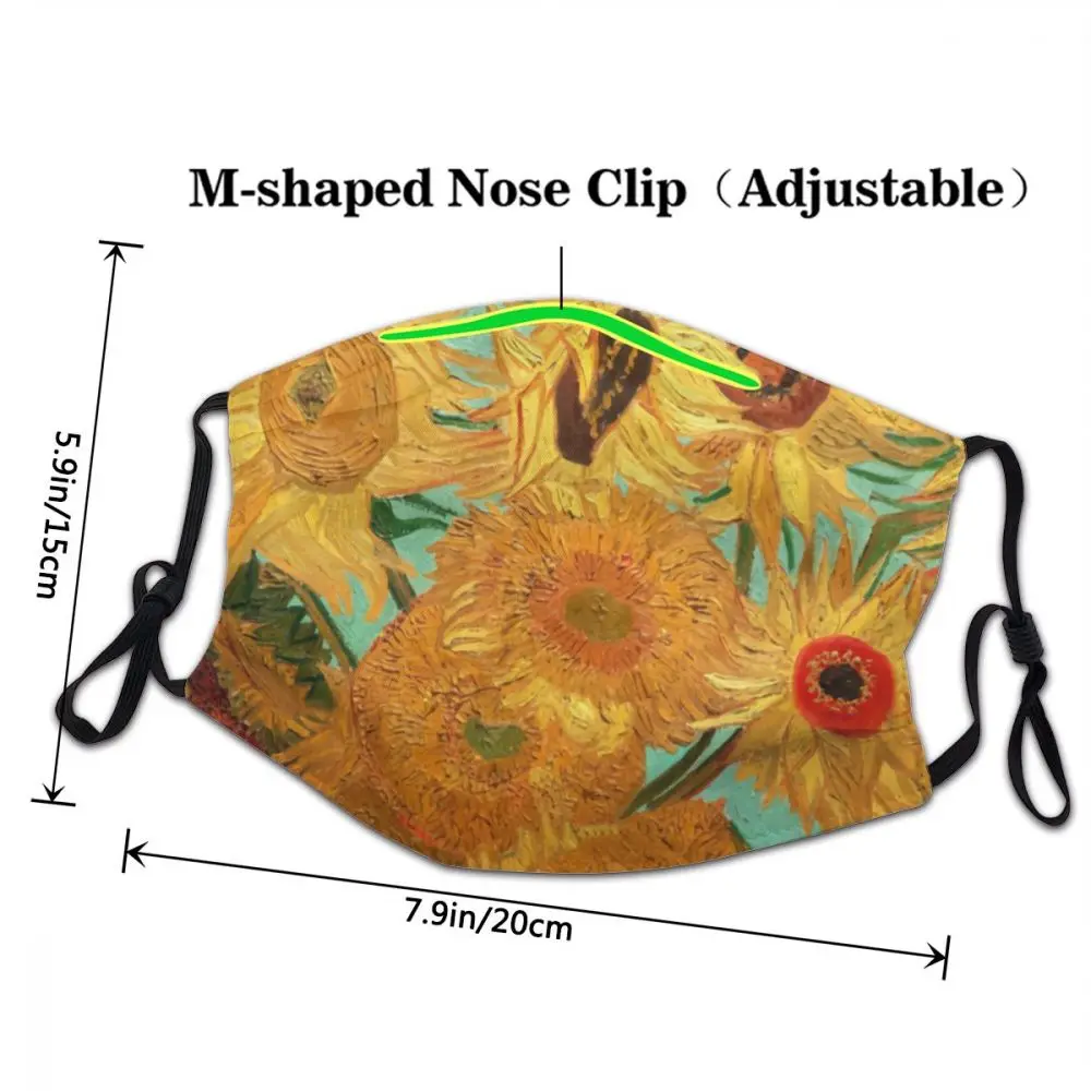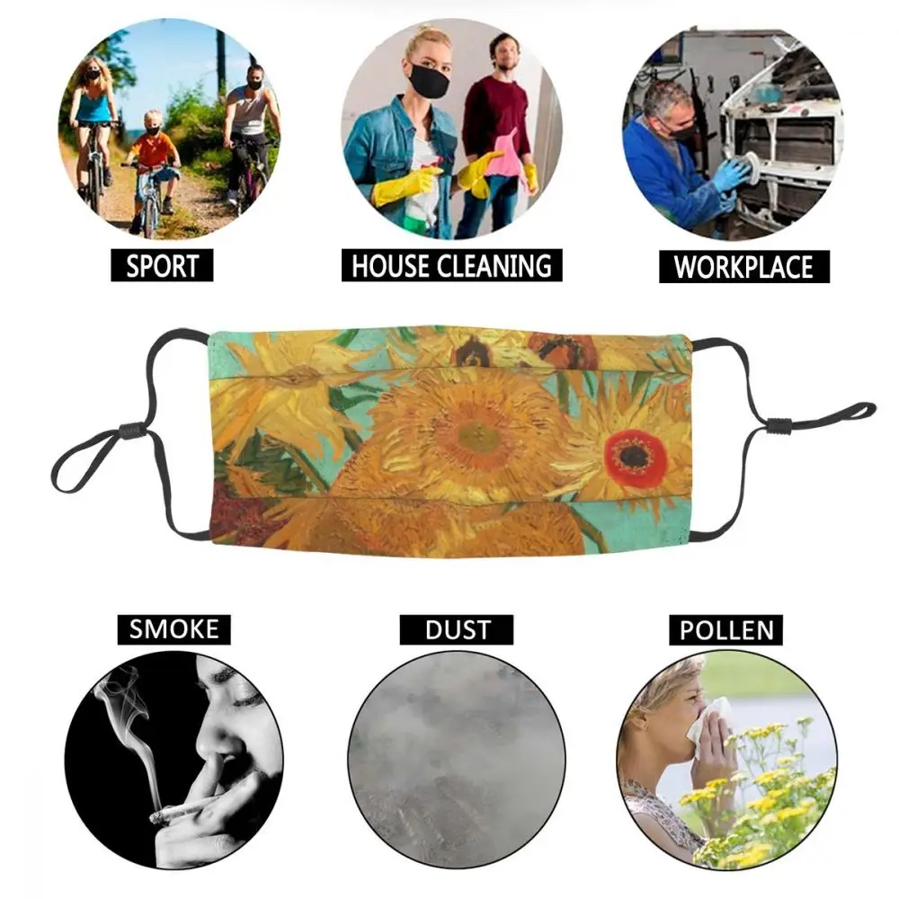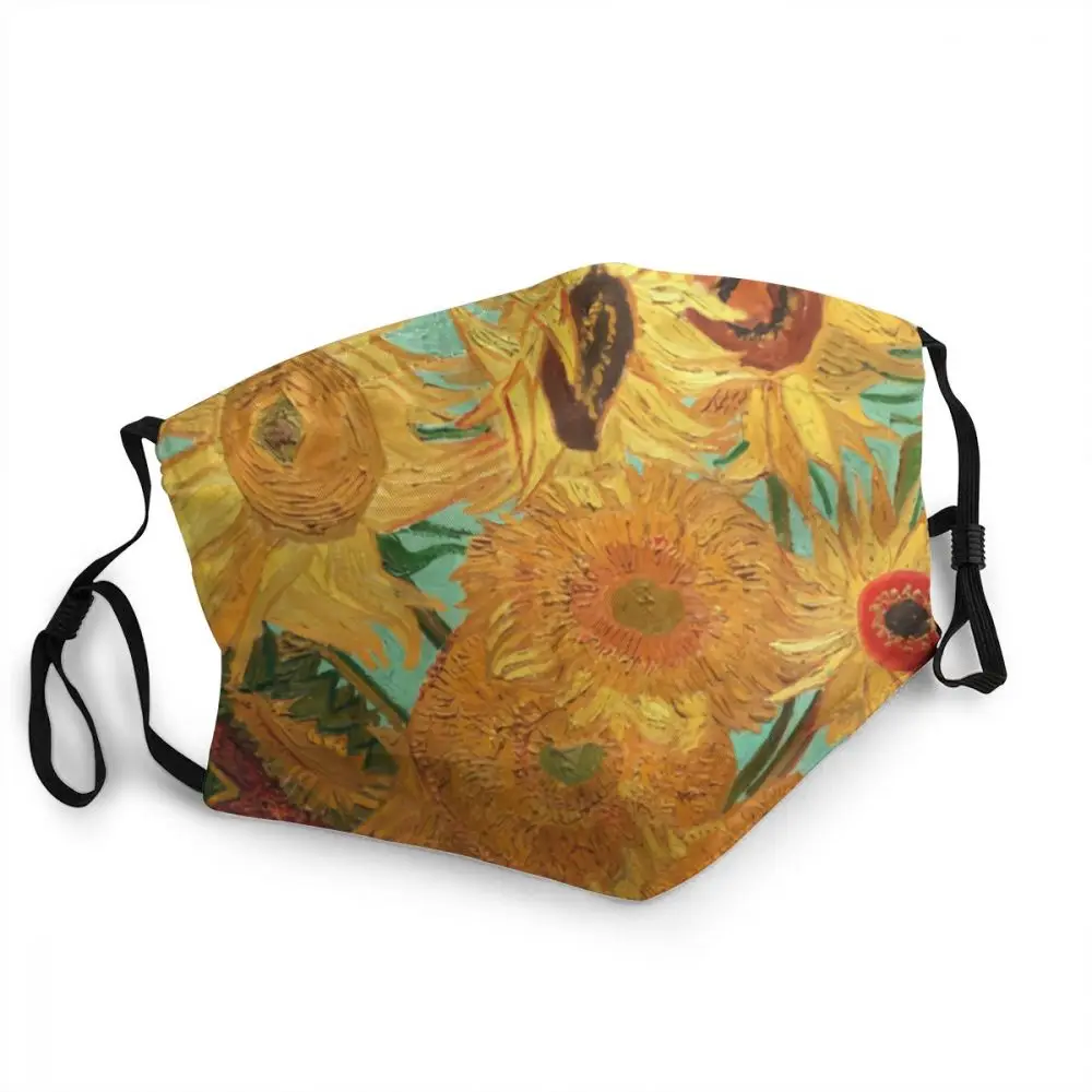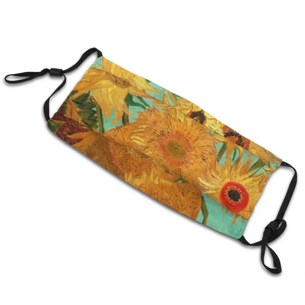 Многоразовая маска для лица с изображением Винсента Ван Гога, двенадцати подсолнухов в вазе, Пылезащитная маска против смога, респиратор, маска