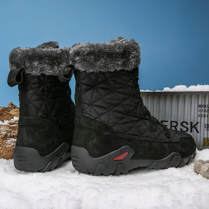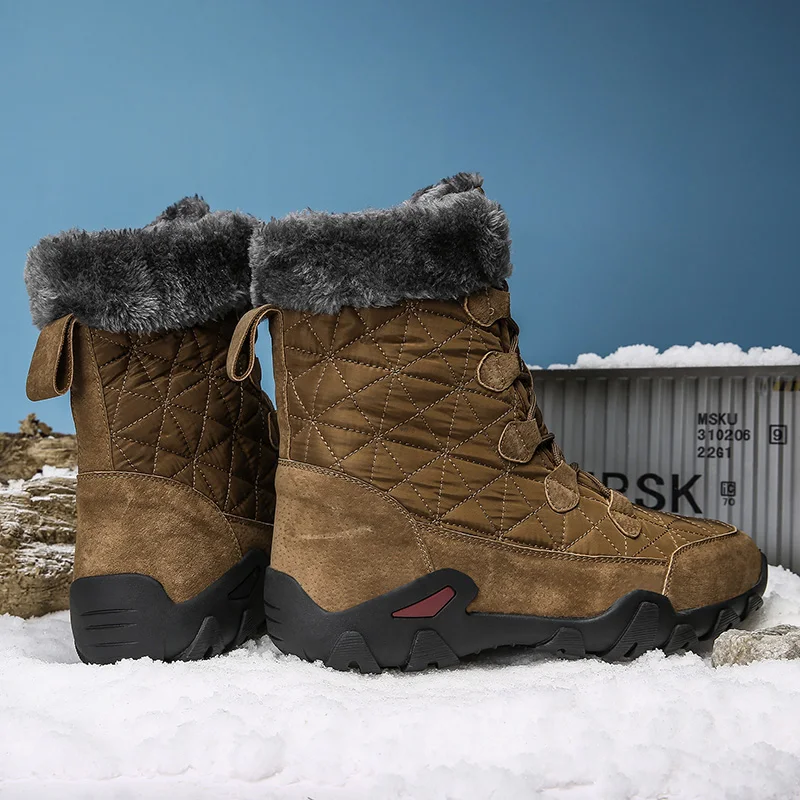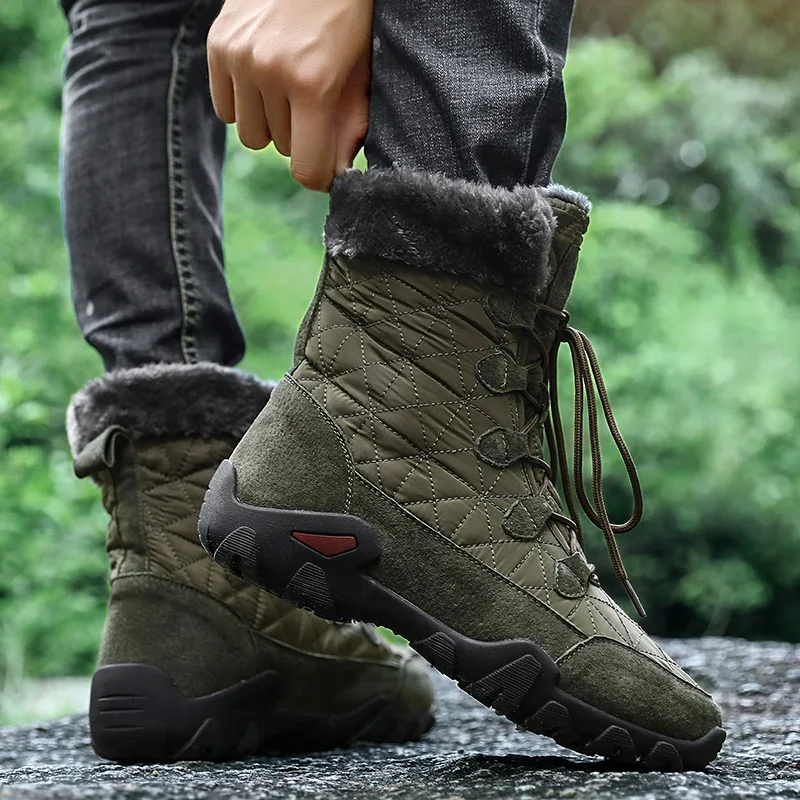 Мужские зимние теплые меховые плюшевые замшевые ботильоны из водонепроницаемой ткани; Мужские высокие Нескользящие резиновые рабочие ботинки