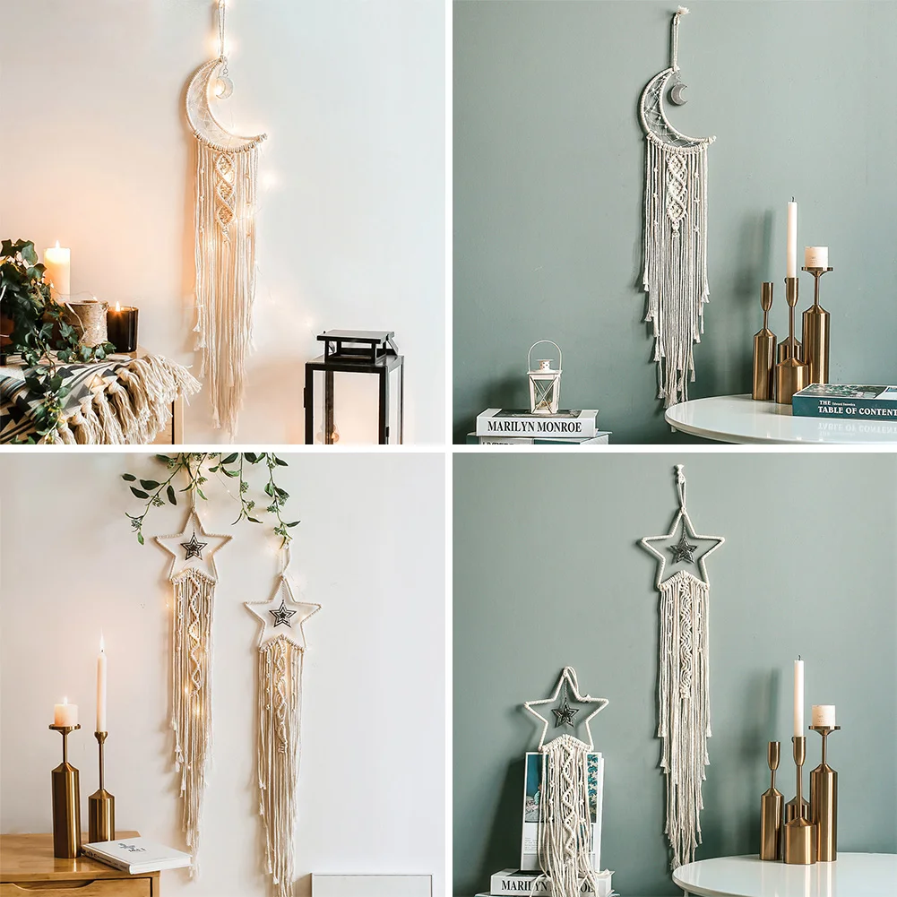 Скандинавская звезда Луна макраме Ловец снов в стиле бохо Декор для комнаты украшение для комнаты макраме настенные Подвесные Подарки для детской комнаты