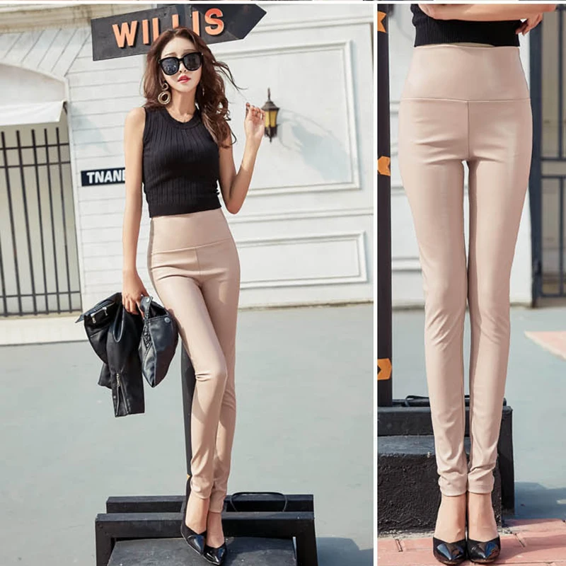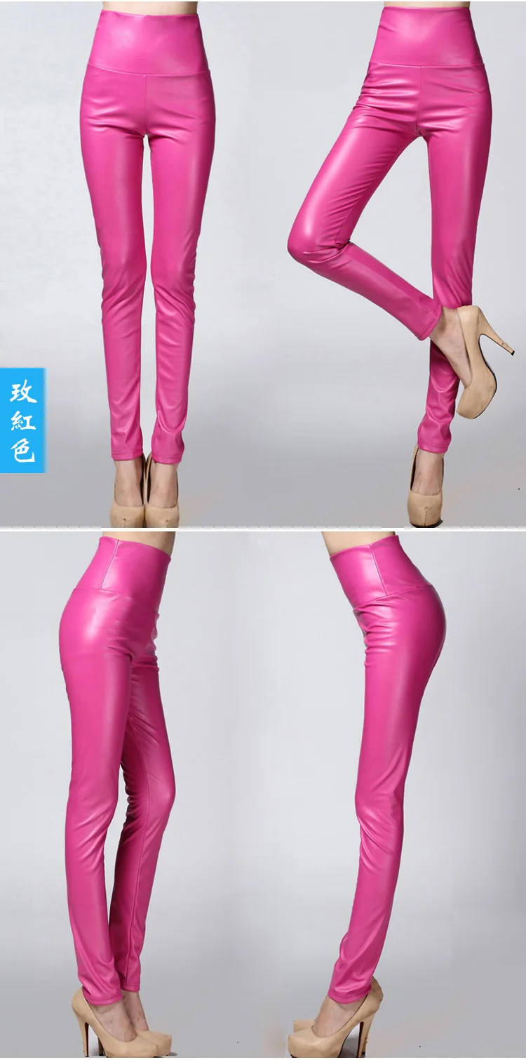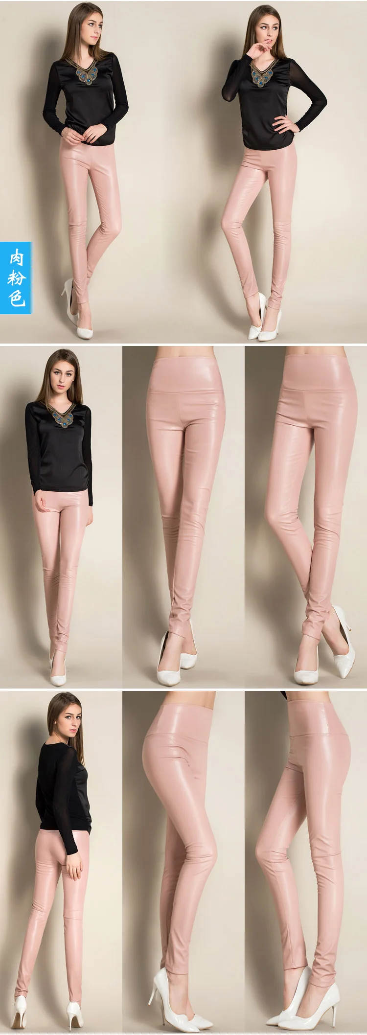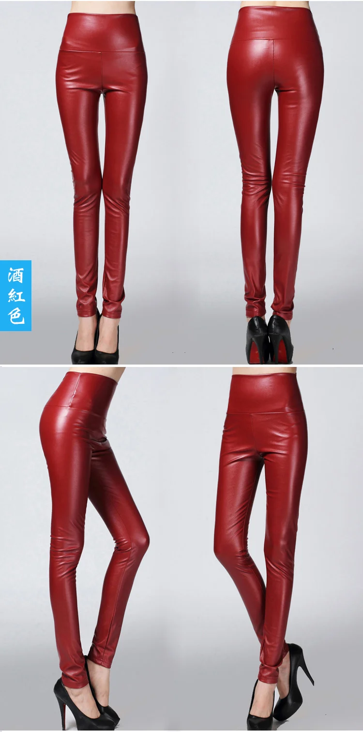 Осенние бархатные тонкие эластичные облегающие Женские кожаные брюки с высокой талией, облегающие брюки-карандаш из искусственной кожи, женские уличные брюки с эластичным поясом 2XL