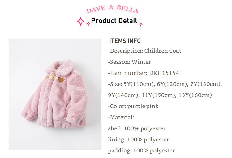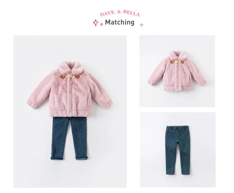 DKH15154 dave bellaзимнее детское модное однотонное Стеганое пальто с карманами для девочек милые детские топы, верхняя одежда высокого качества