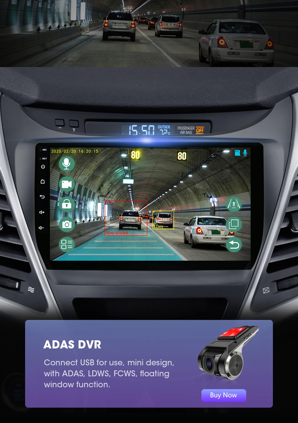 Поддерживает подключение к видеорегистраторУ ADAS. ADAS DVR имеет несколько встроенных ассистивных технологий вождения, вставляя высококачественную карту памяти TF для записи каждого момента вашего вождения.