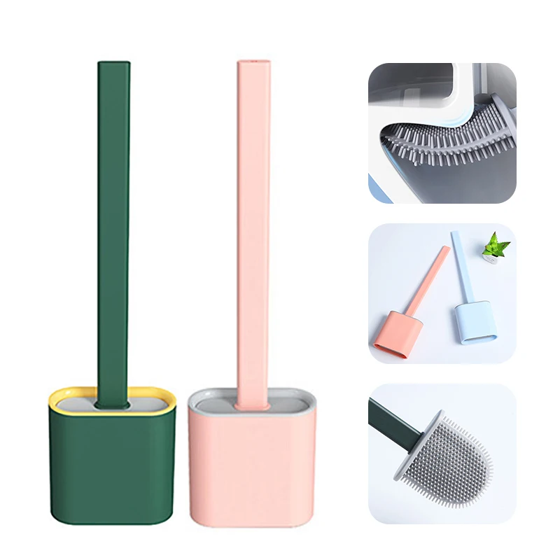 Силиконовая щетка для унитаза с плоской головкой, гибкая мягкая щетина, гибкая щетка для унитаза с держателем