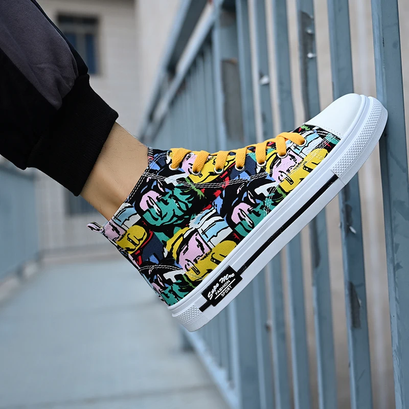 Мужские парусиновые туфли с высоким берцем, черные, с принтом, вулканизированные, женские, со звездами, повседневные, для скейтбординга, классические фирменные кроссовки, 2021