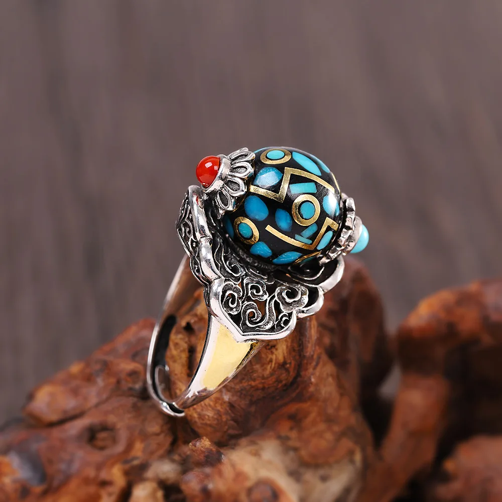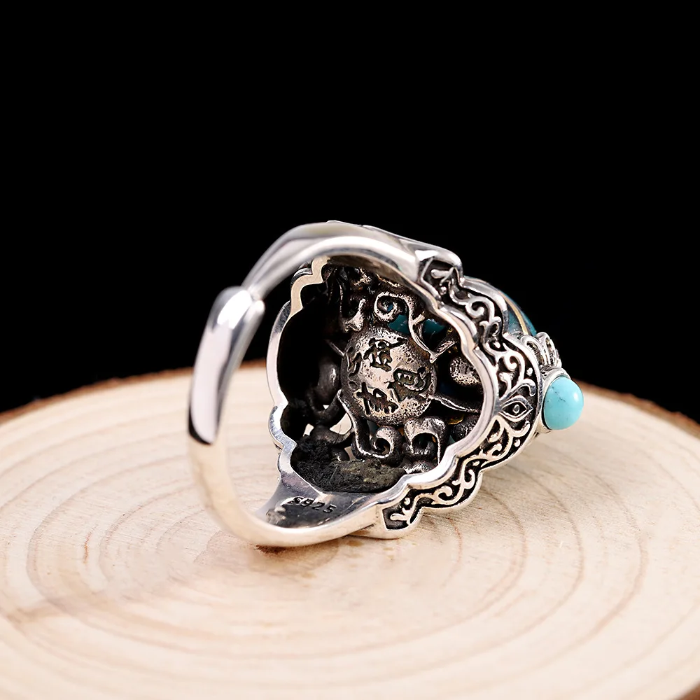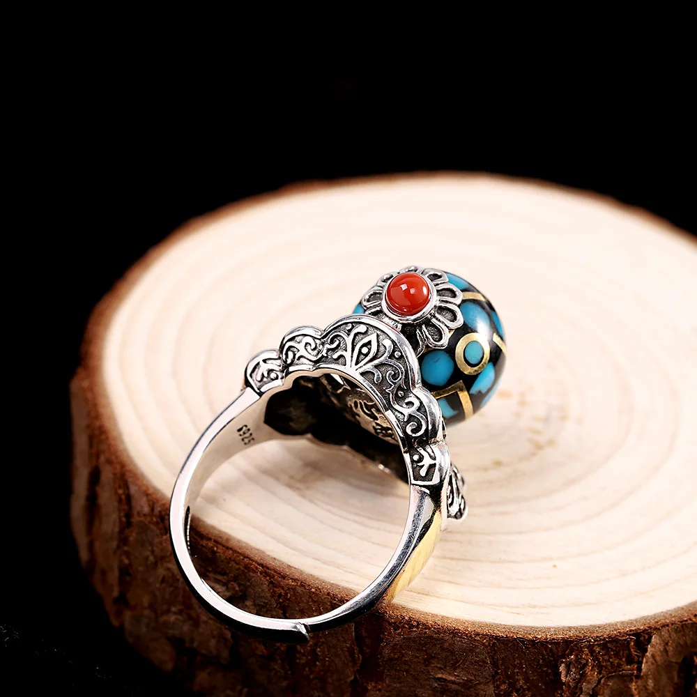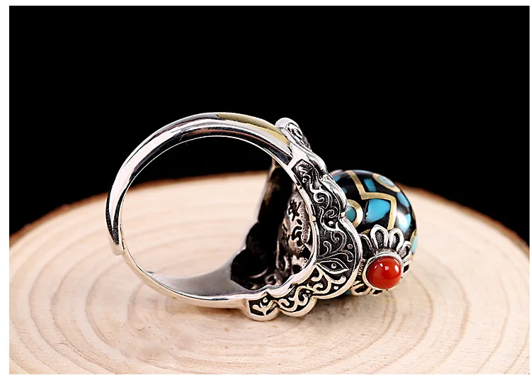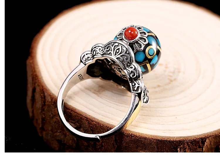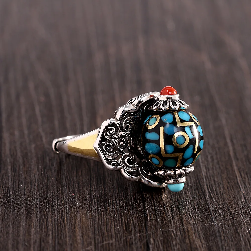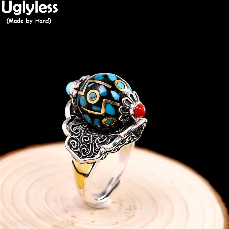 Uglyless винтажные этнические RUYI кольца с бирюзой женские кольца ...