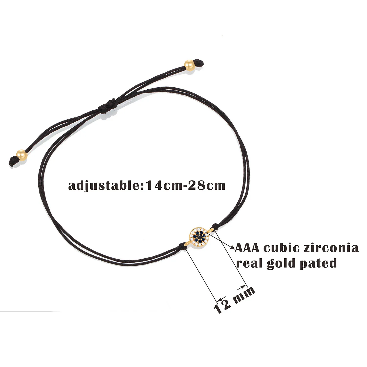 Зимние женские классические модные белые, синие, черные кубические циркониевые камни, Круглый сглаза, очаровательный браслет для женщин, CZ, красная веревка, ювелирные изделия