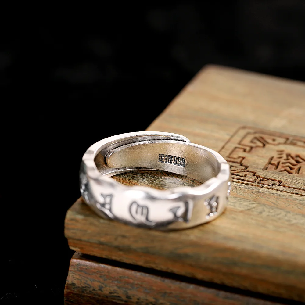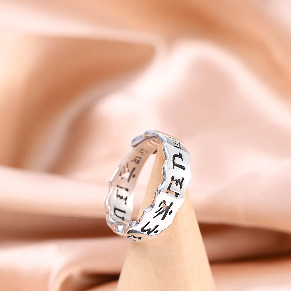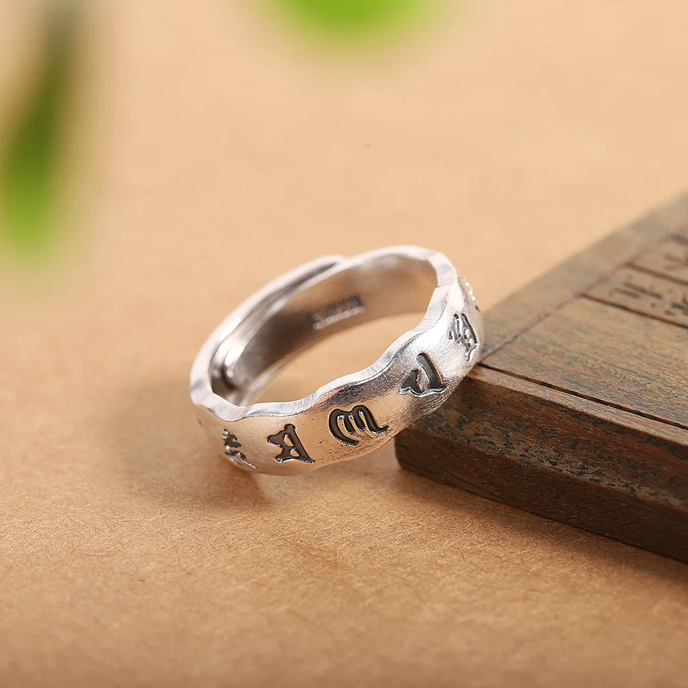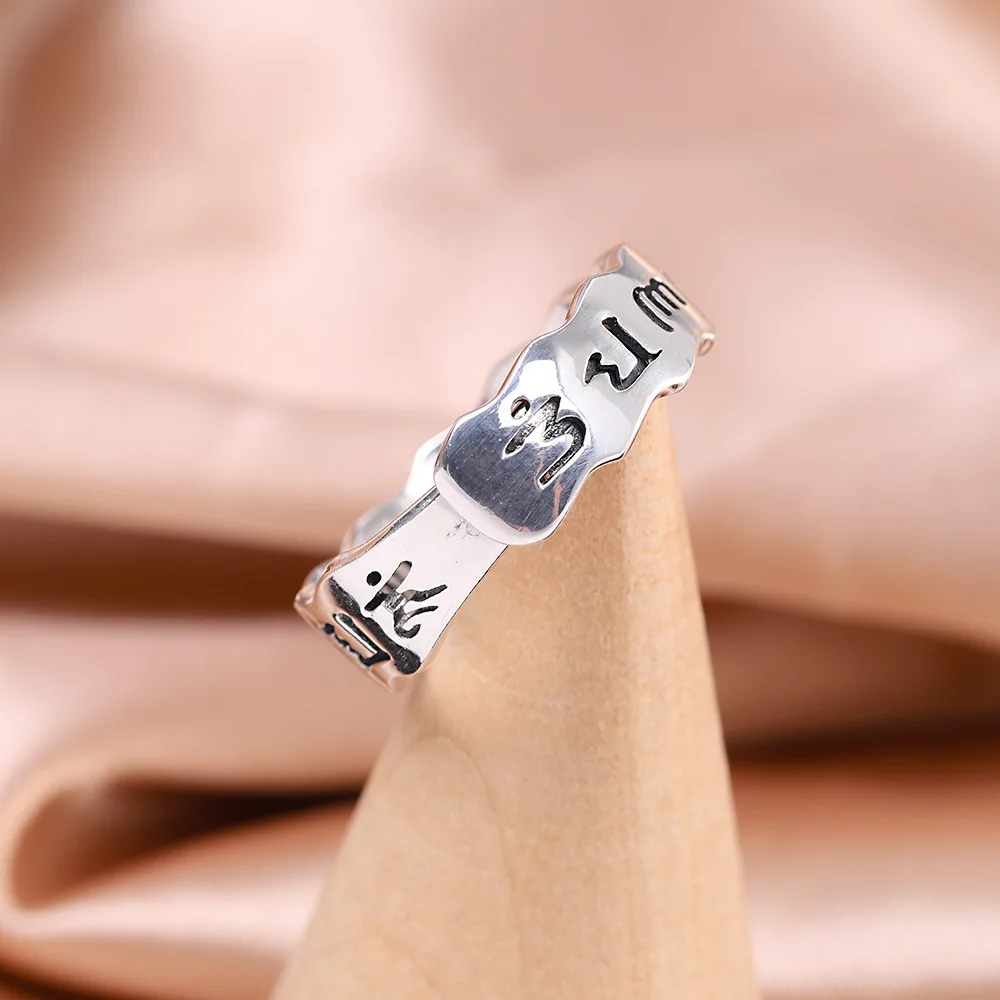 Uglyless 100% 999 серебро унисекс Полые 6 слов мантровые кольца для мужчин женщин мужчин буддисты ювелирные изделия тайские серебряные религиозные кольца буддизм