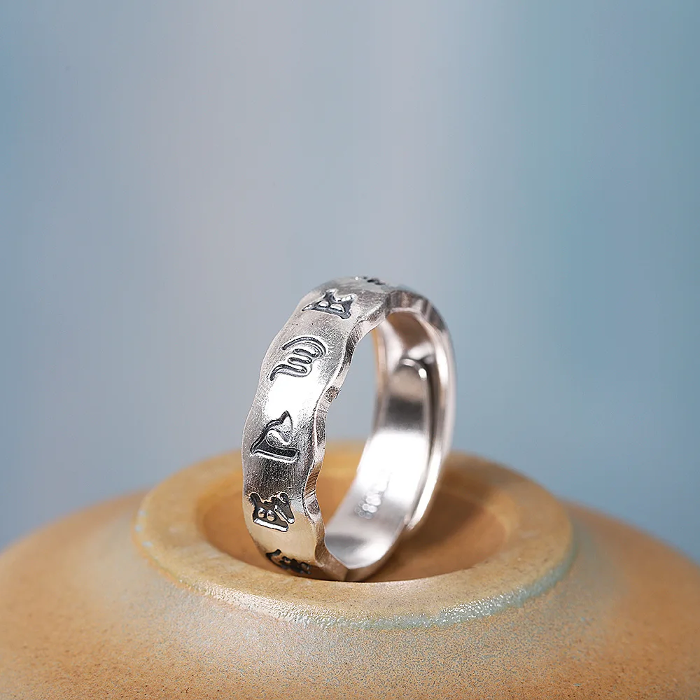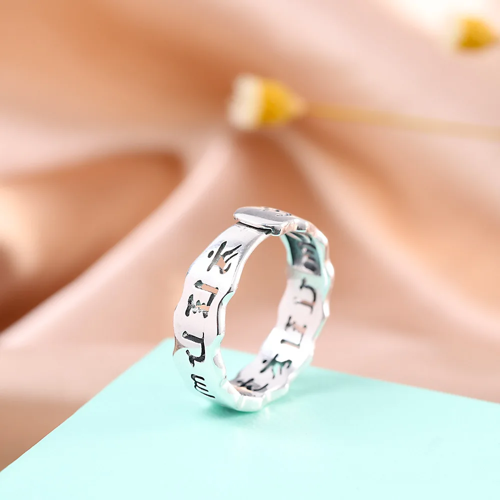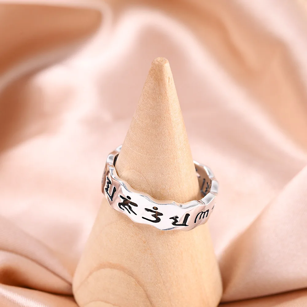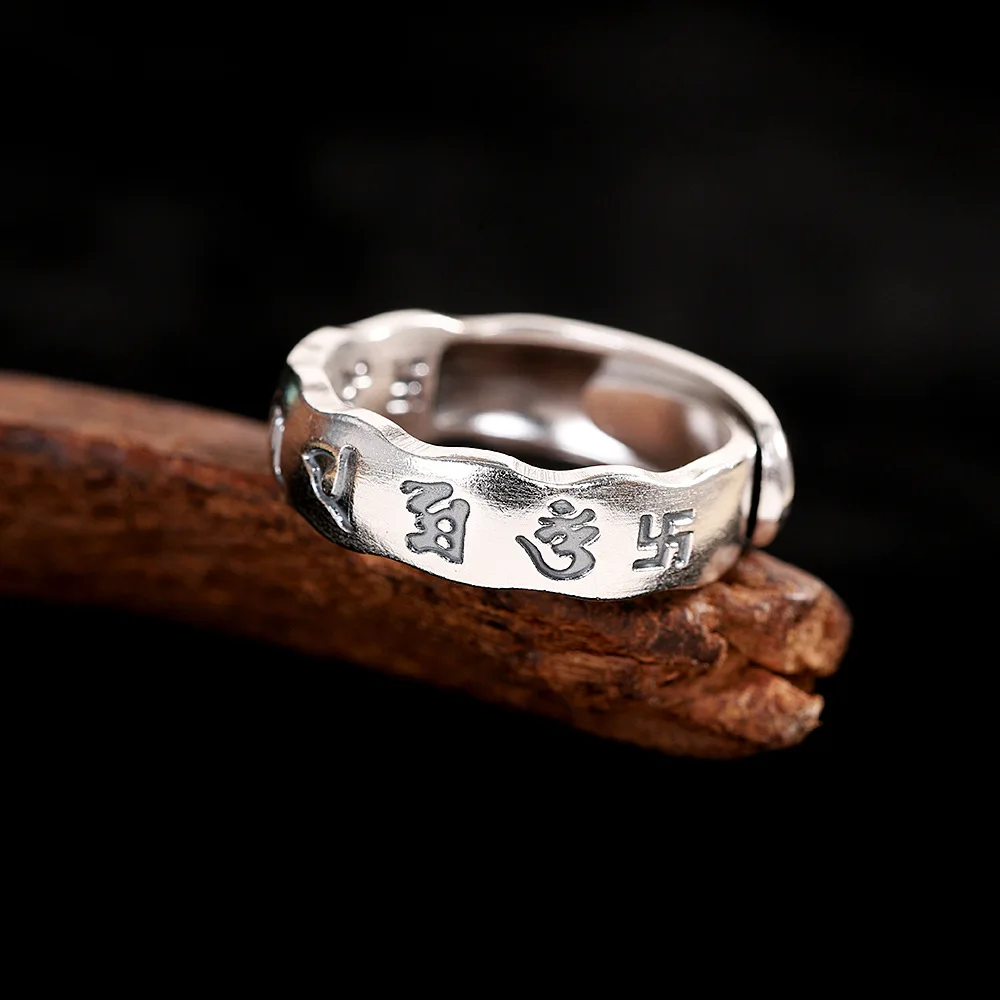 Uglyless 100% 999 серебро унисекс Полые 6 слов мантровые кольца для мужчин женщин мужчин буддисты ювелирные изделия тайские серебряные религиозные кольца буддизм