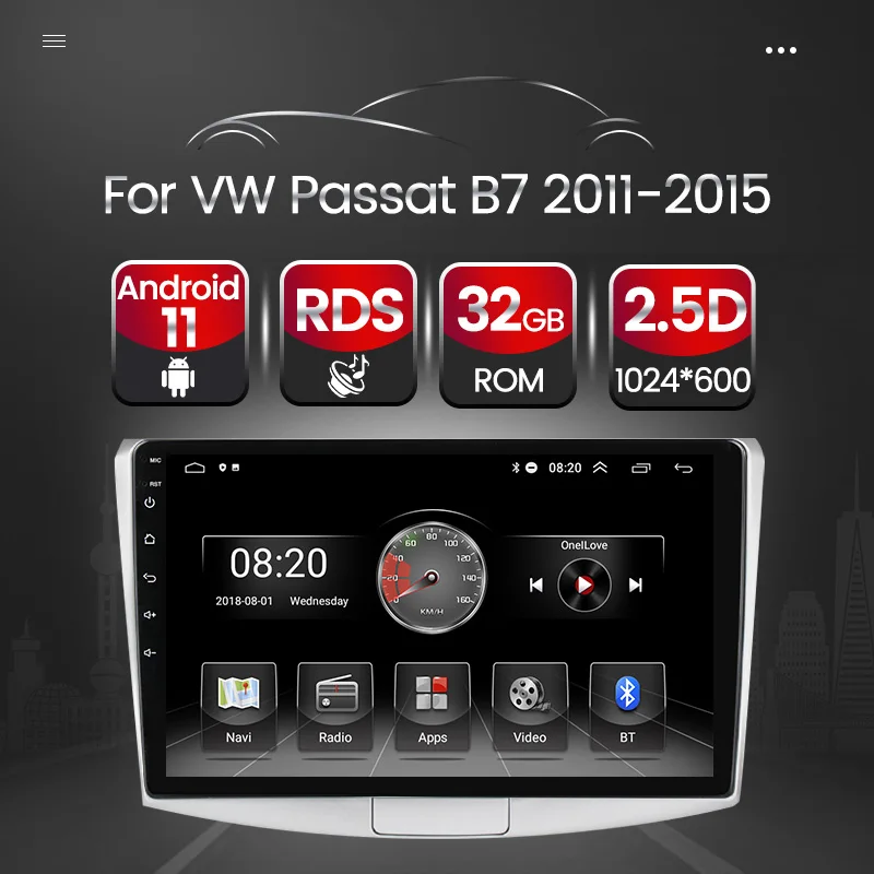 Автомобильный мультимедийный GPS-навигатор, Android 11, 4 ядра, 2 + 32 ГБ, для VW Volkswagen Passat B7 B6 B5 2010-2015 Magotan