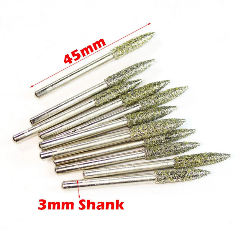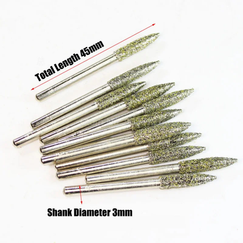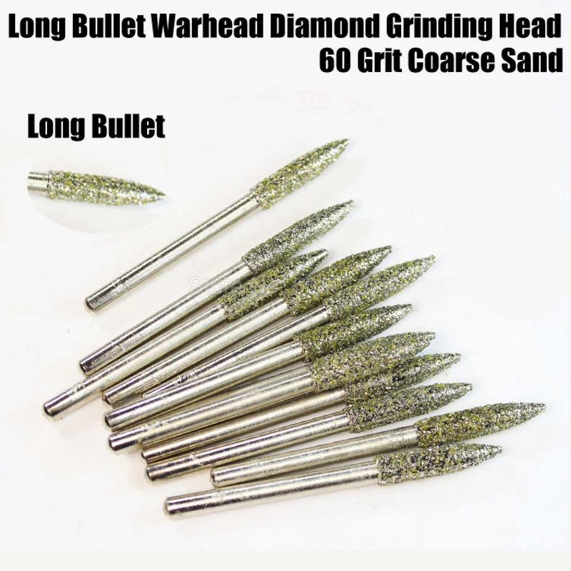 1 шт. Гальваническая алмазная шлифовальная головка хвостовик полированная игла Нефритовый камень резьба гравировка длинная пуля заусенцы форма вращающийся инструмент