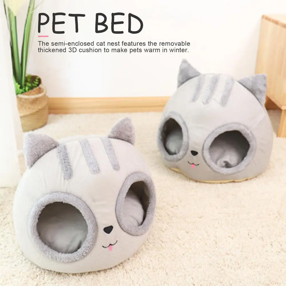 Съемная кровать для кошек, теплая Лежанка для домашних питомцев, зимняя Лежанка для котят и собак, в форме головы