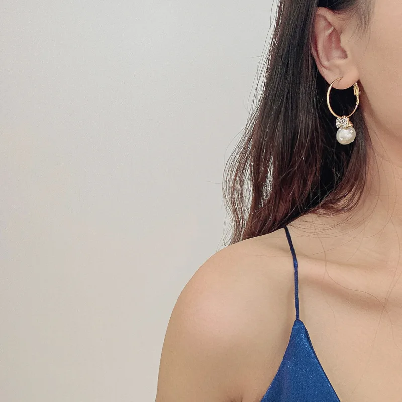 Серьги-кольца женские из серебра 925 пробы, с жемчугом