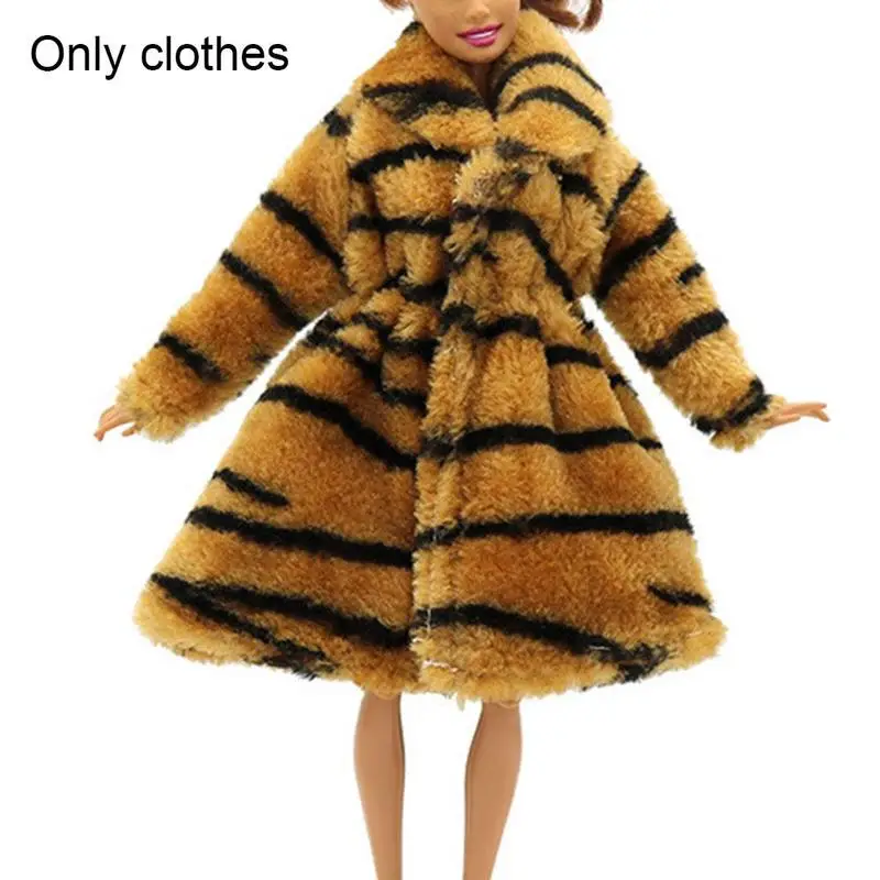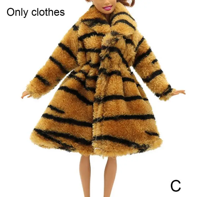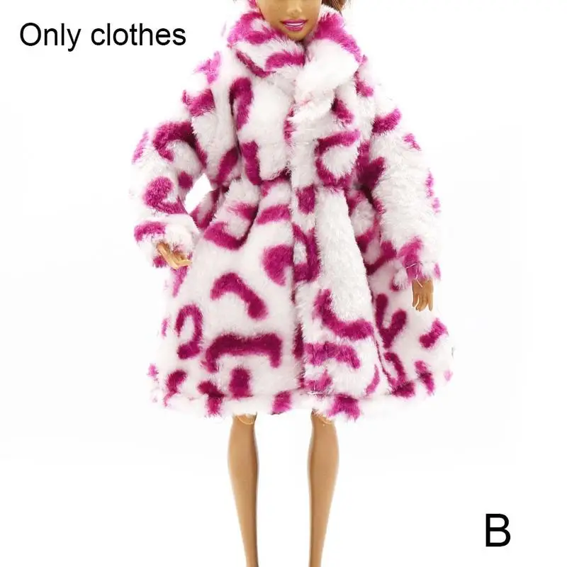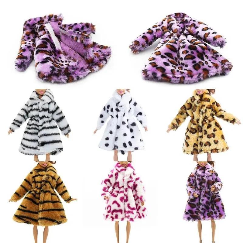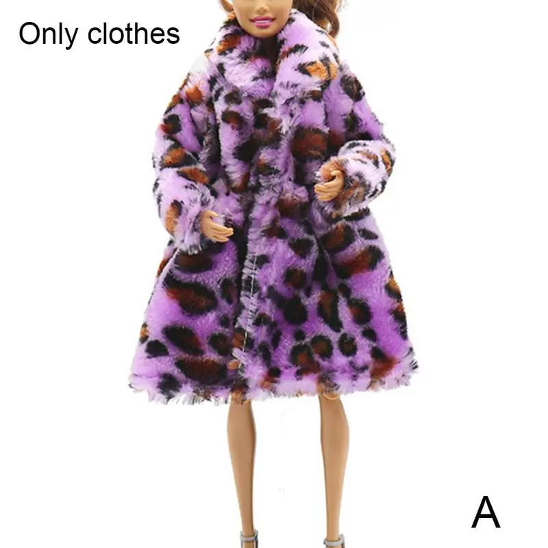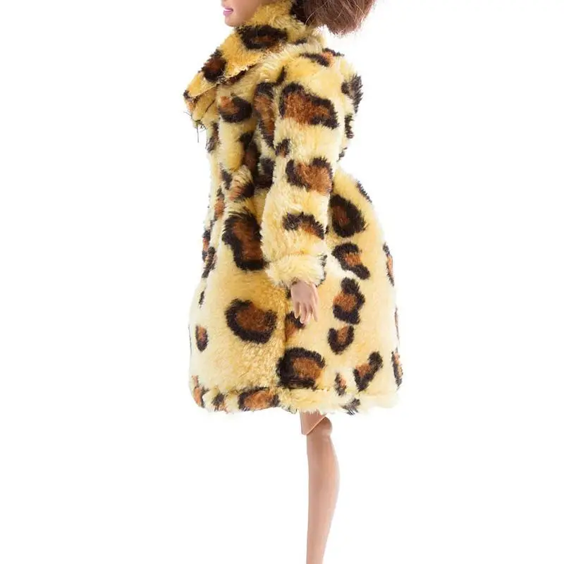 Леопардовое плюшевое пальто для куклы, зимняя одежда, платье, зимний комбинезон, высокое качество, ручная работа, кукла, игрушка, аксессуары, одежда, кукла, Y3F1
