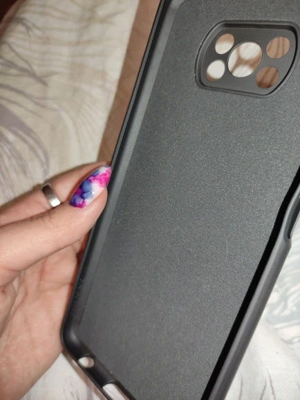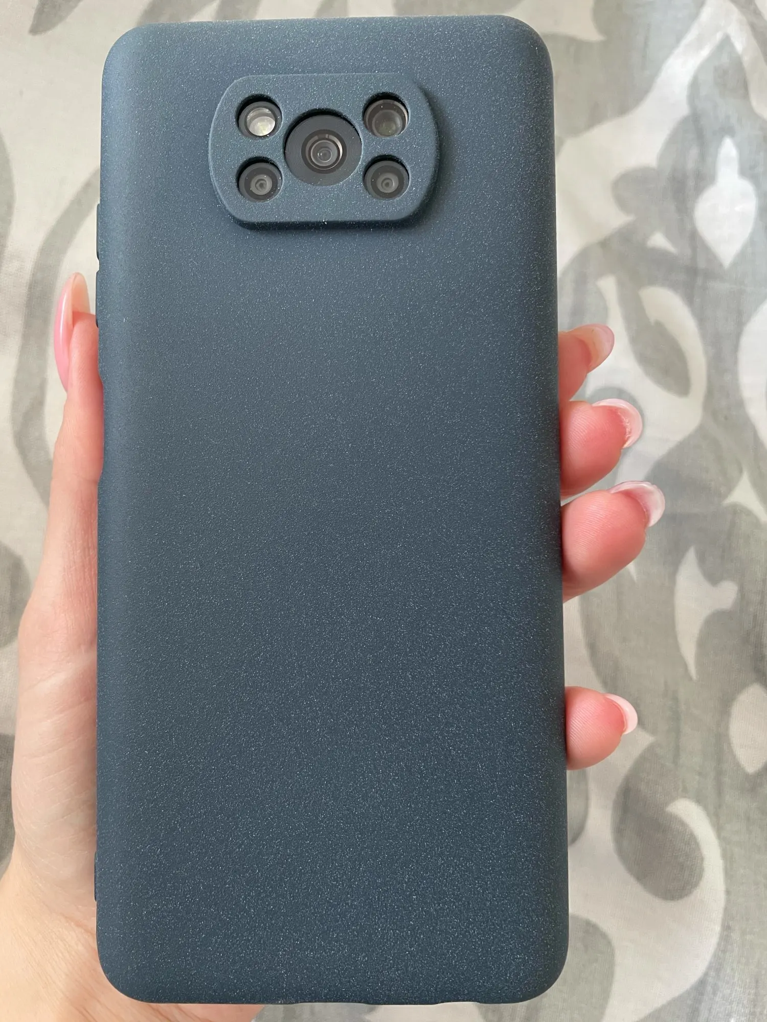 Чехол пришёл за 3 недели вместе с остальными посылками. Цвет очень красивый! На Poco X3 nfc сел идеально! Камеру закрывает, в руках не скользит, но пачкается: за 2,5 недели использования немного посерел. Попробую потереть салфетками для экранов. Надеюсь, не облезнет, ибо его брала "на повседневку"))) Рекомендую!