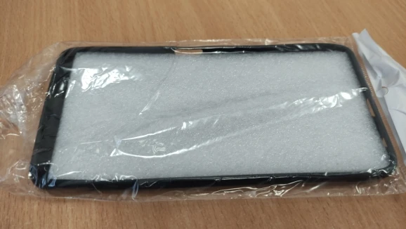 хороший, приятный на ощупь немного выперает со стороны экрана чуток пахнет резиной