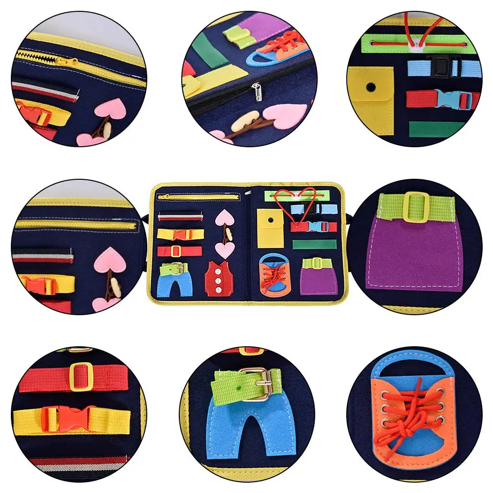 1. Дизайн сумки: с дизайном сумки, основная плата изготовлена из шерстяного материала, и небольшая часть из него изготовлена из хлопкового материала, который является мягким и безопасным, И дети могут использовать его во время игры. Оснащен небольшим замком для любви.2. Обучение и игра: прекрасный инструмент для вашего ребенка, чтобы узнать навыки одевания, не чувствуя себя слишком расстроенным, но это достаточно сложно, чтобы ваш ребенок был заинтересован. Игрушка, подходящая для дошкольного образования, семейного образования и деятельности родителей и детей.3. 14 в 1 упаковка: 6 цветных пряжек, 1 шнурка, 1 карман на застежке, 1 оливковая Пряжка, 1 липучка, 1 синяя эластичная лента и 1 Инструкция на молнии, 1 Регулировочная пряжка, 1 пуговица для одежды. Улучшите координацию рук и глаз и развивайте креативное мышление.4. Портативный размер: 28*22 см, дизайн ручки, гибкий, без жестких углов. Это позволяет детям использовать, играть и учиться в автомобилях или самолетах.5. Широкие функции: это может помочь детям развить основные мелкую моторику и обеспечить сенсорный опыт. Красивый инструмент для дошкольного обучения, подходящий для детей старше 1 года.