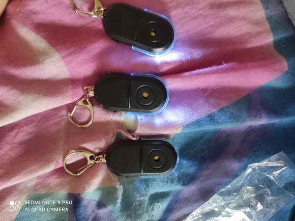 Сначала я думал, что он не работает, но после небольшой задержки он блестит и издает громкий звуковой шум-мой муж наконец-то сможет найти ключи XD все точно так же, как на фото-другая плюс сторона то, что он маленький, так что для тех, кто любит иметь миллион вещей на брелке, будет приятно