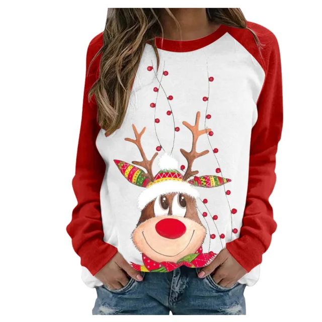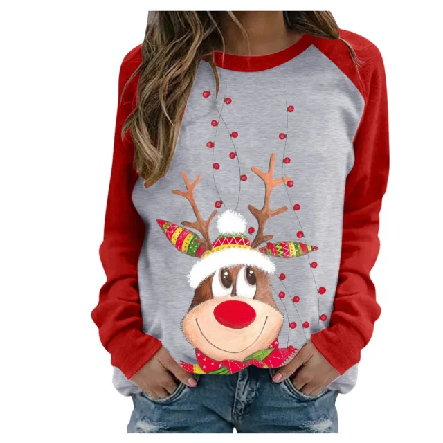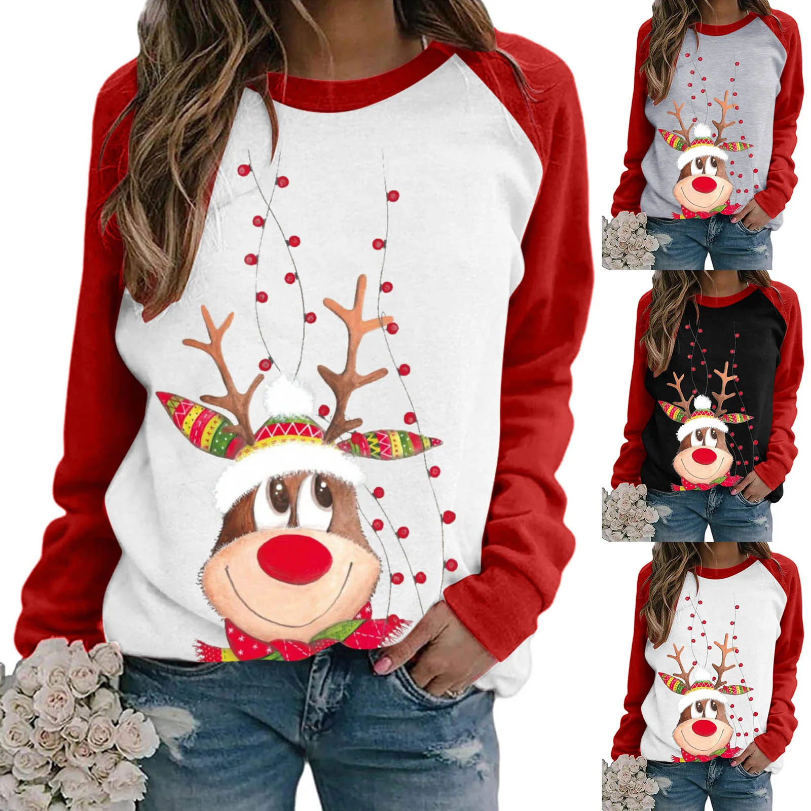 Забавный Милый принт лося с длинным рукавом Рождественская женская футболка Харадзюку S-2xl хлопок женские футболки графическая Эстетическая рубашка женская