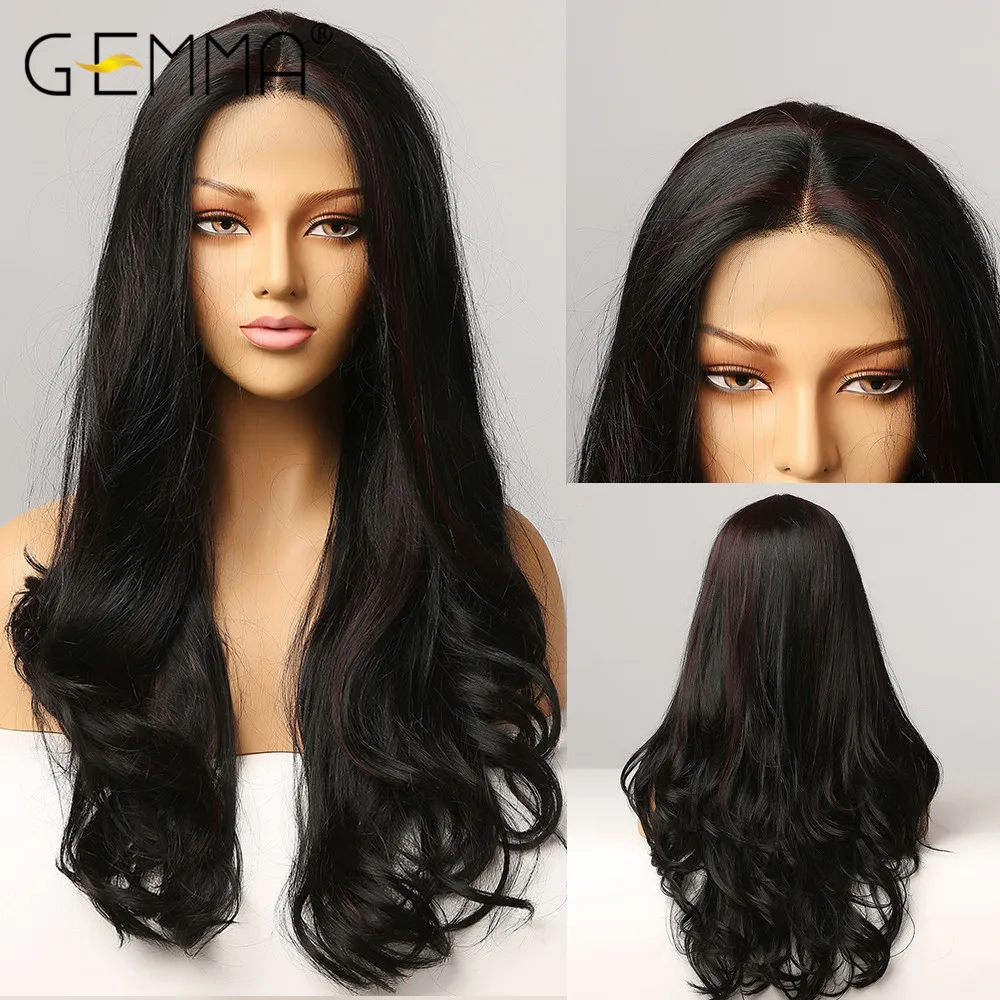 GEMMA Платина блонд натуральные волнистые синтетические кружева передний парик для женщин средняя часть Длинные Кружева Часть парики Косплей термостойкие