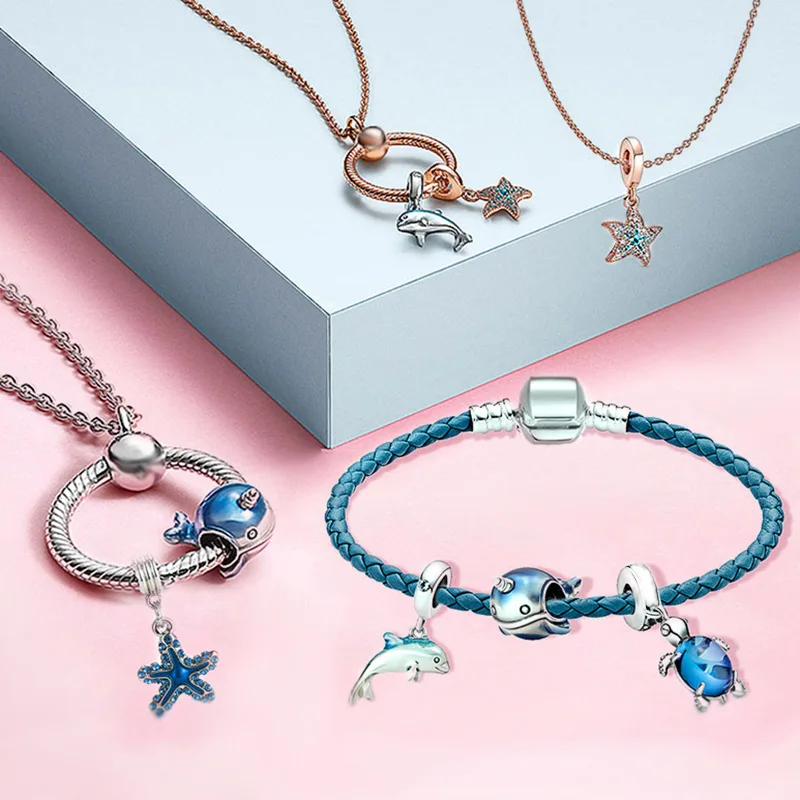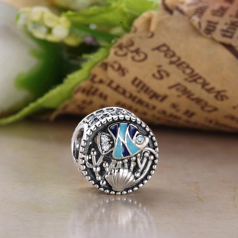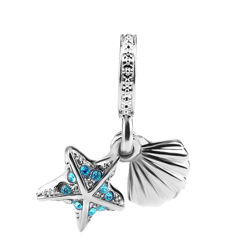 Тонкая морская серия, морской бусины в виде черепахи для женщин, ювелирное изделие, подходит для оригинального браслета Pandora Chrams, подвеска в виде морской звезды