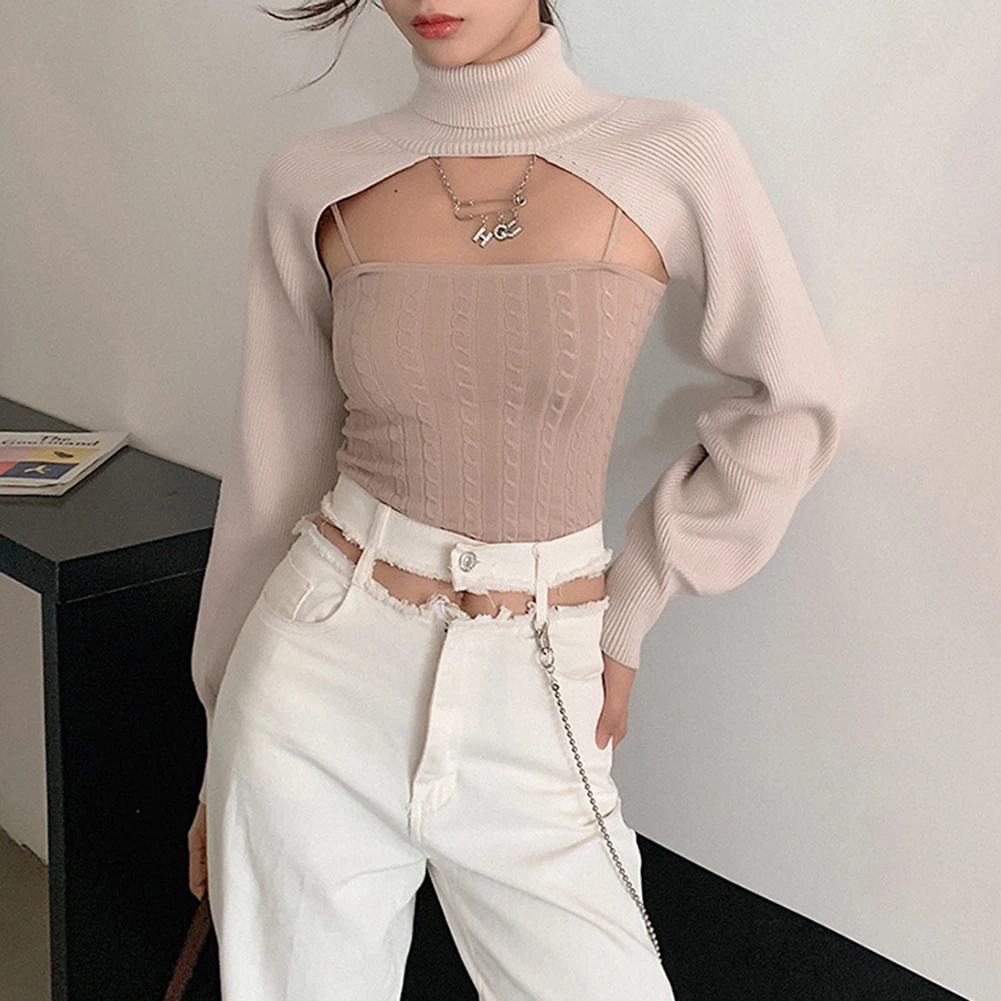 Женская водолазка с вырезами, сексуальный короткий свитер 2020, женский длинный рукав, шикарный женский укороченный топ, пуловеры, уличная одежда для женщин