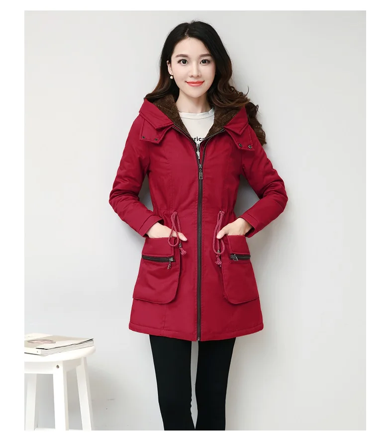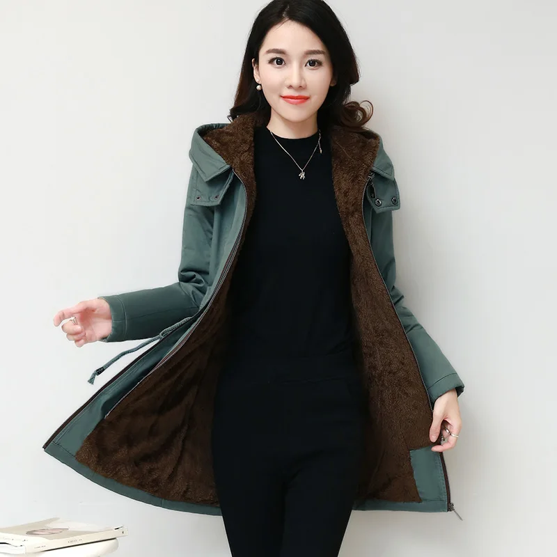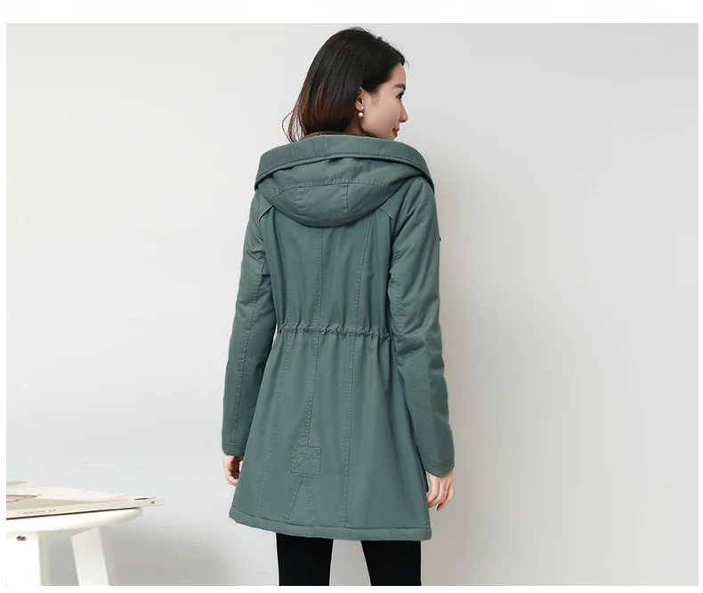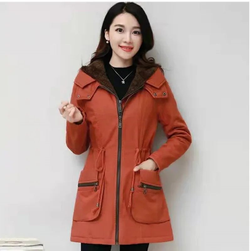 2020 осенне-зимняя новая хлопковая Женская куртка с капюшоном, теплое и бархатное толстое длинное пальто, регулируемое однотонное повседневное женское зимнее пальто