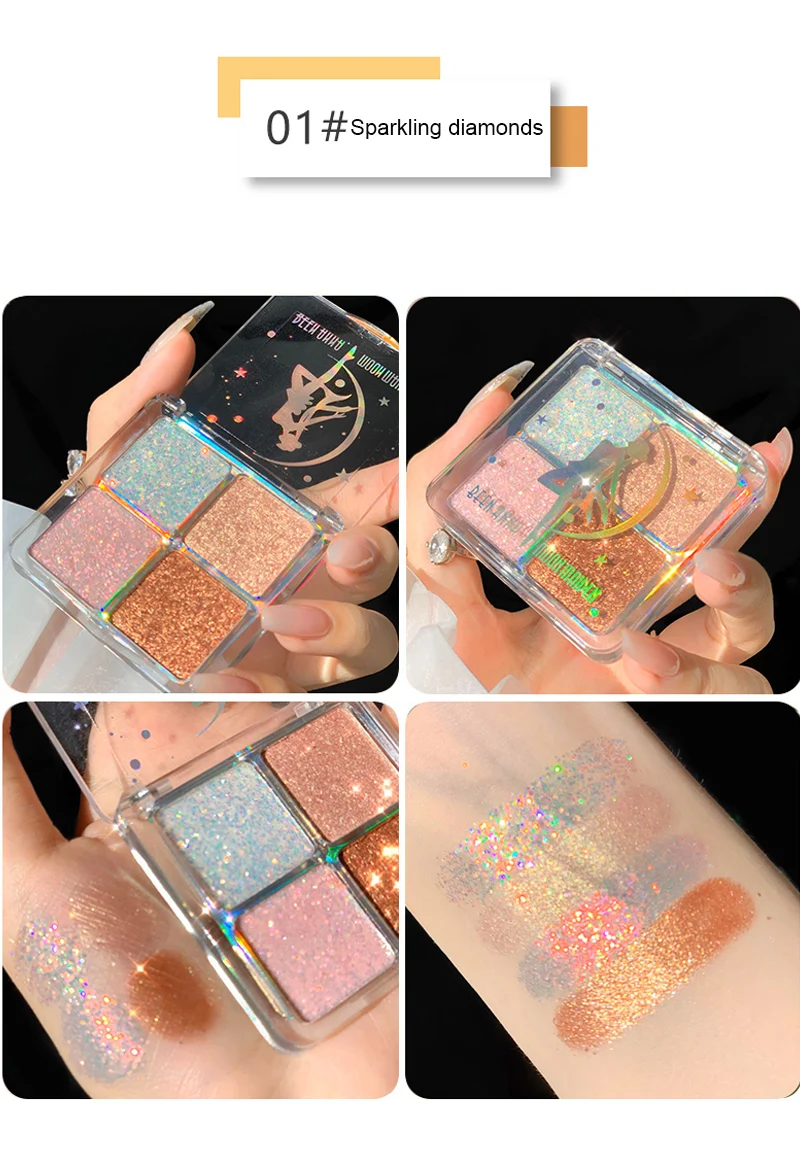 Палитра блестящих теней для век, 4 цвета, металлик, алмаз, яркий, блестящий хайлайтер, макияж, водостойкие Перламутровые тени для век, косметика TSLM1