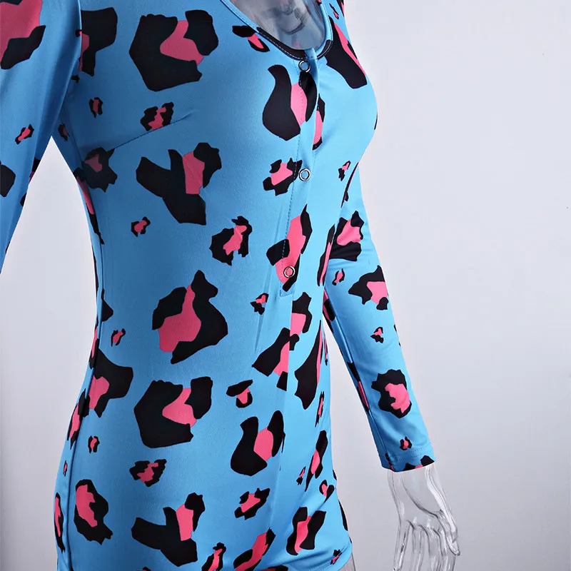 Пикантная Женская облегающая Пижама с глубоким V-образным вырезом, теплые комбинезоны, короткая мягкая Пижама для сна, милитарная Пижама на пуговицах с рисунком Боди с длинным рукавом