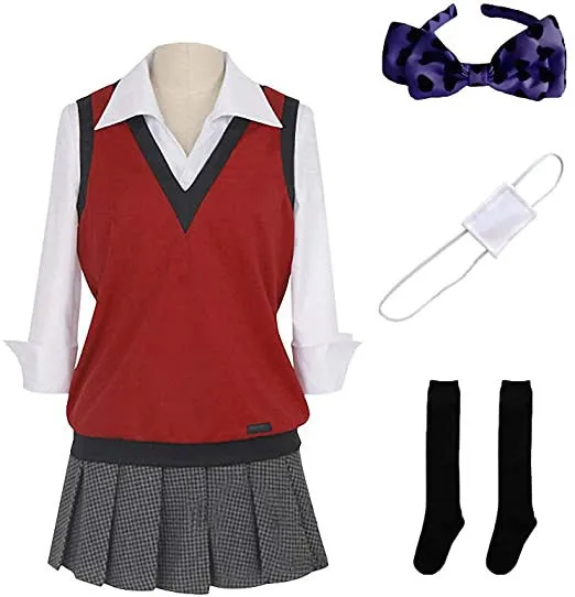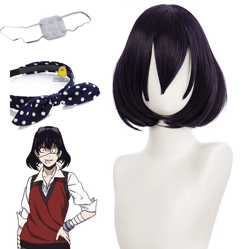 Парик Kakegurui Midari Ikishima для косплея, короткий, черный, фиолетовый, Женские синтетические волосы, Хэллоуин, Рождественский повязка для волос глаз, патч-юбка набор