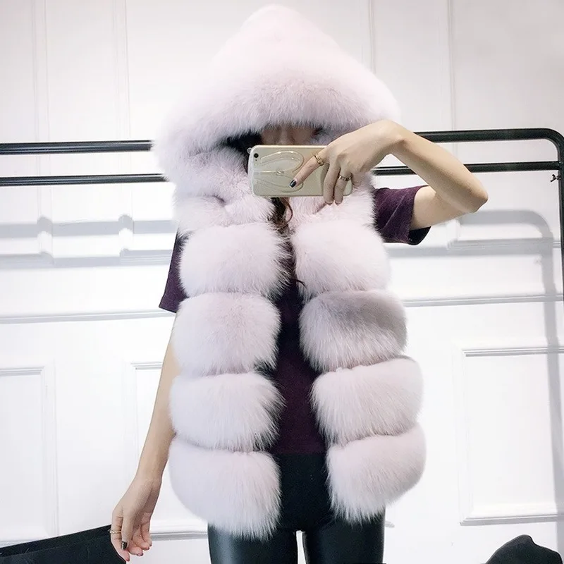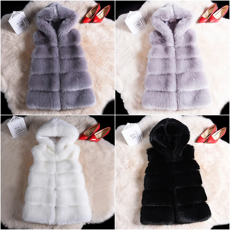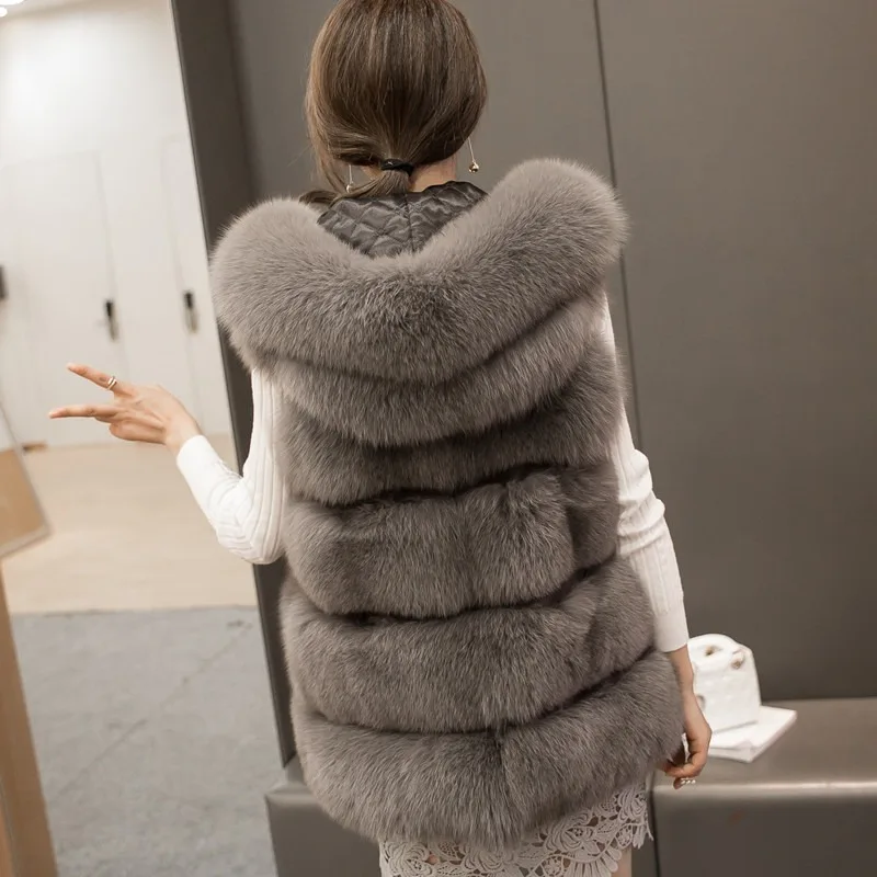 Женский меховой жилет без рукавов, однотонный Свободный теплый жилет из искусственного лисьего меха с капюшоном, зима 2020