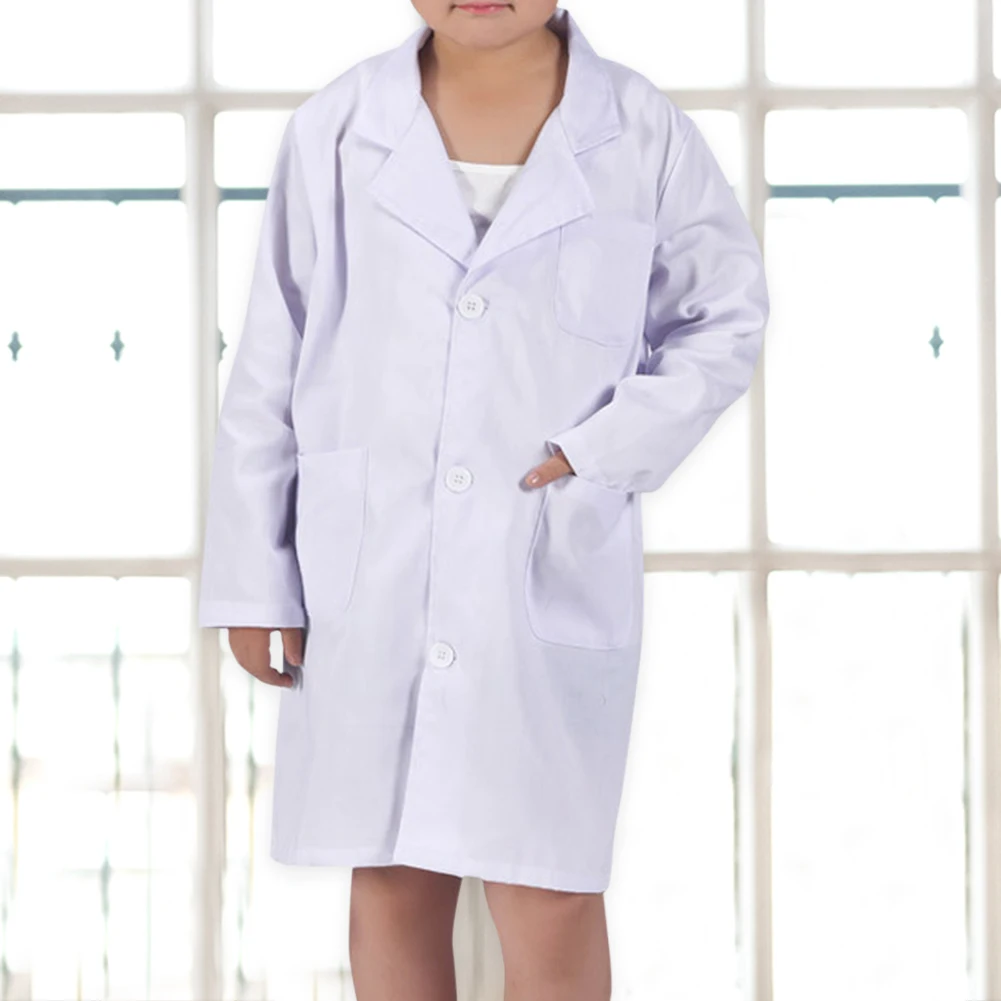 Детская белая лабораторная куртка унисекс с длинными рукавами, воротник с лацканами, карманы на пуговицах, блузка для косплея медсестер и врачей